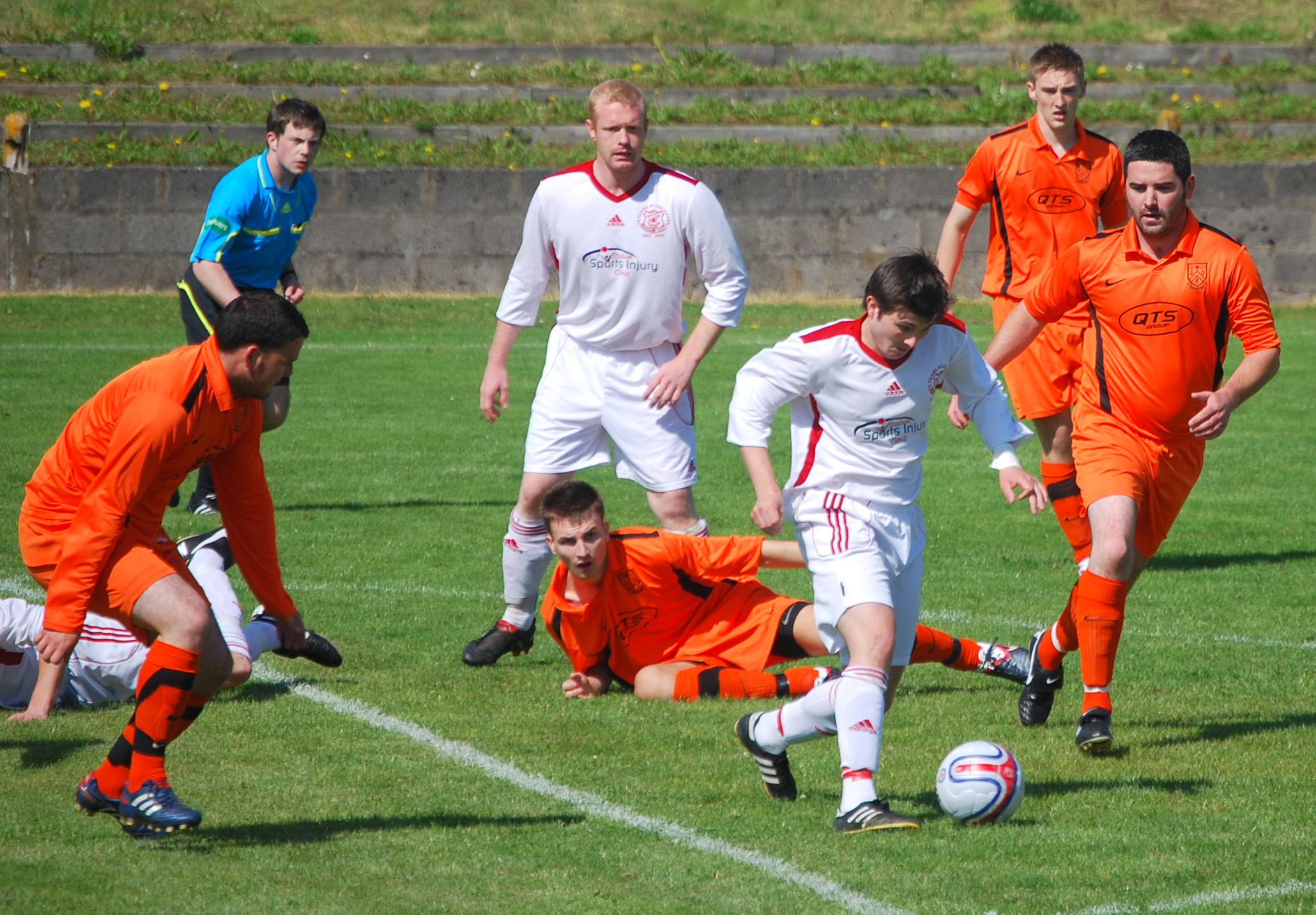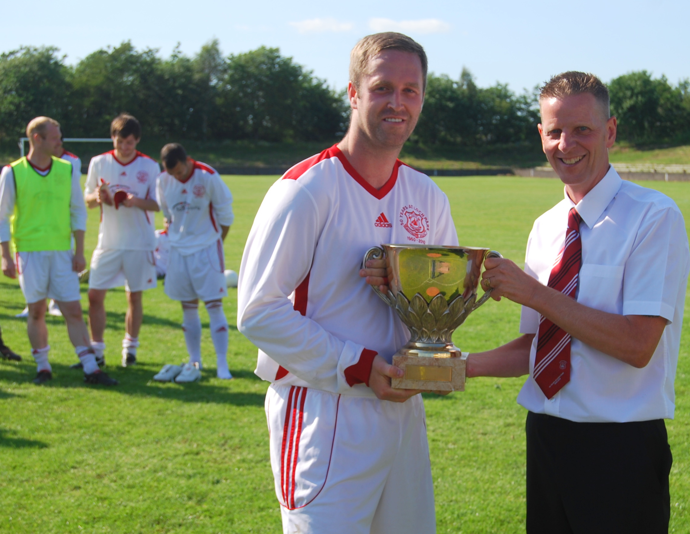 Added interest in this game for the home support was the presence of former Glenafton players Jonathan Baillie, Graeme Barbour and Gary Robertson in the Troon starting eleven. More to the point, however the game was a much more open affair with spells of wave after wave of end to end play. In the first half delicately struck lob by Barbour from the edge of the box went just wide while at the other end goalkeeper Stuart Leavy pulled off a stunning save to push a header from the Saints towering centre-half past the post. Indeed Leavy went on to have a fine game, quick off his line and clutching safely or punching clear high balls into the box. The Cuddy’s broke the tournament’s duck ten minutes into the second half and no surprise that man-of-the-match live wire Paul McClymont putting the finishing touch to a goalmouth scramble and hit home what proved to be the match winner.