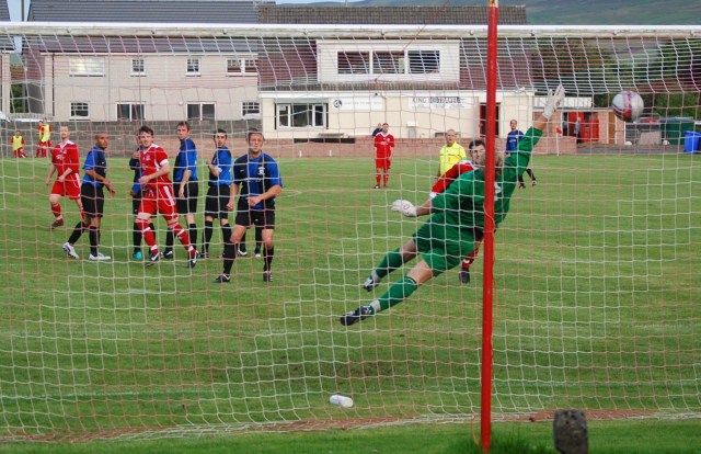 Penalty shoot-out: The home side were first up and after three penalty kicks each the score stood 3-1 in favour of the visitors, Kris Mitchell scoring for the Glens sandwiched between misses from McKenzie and Menzies. Sloan then scored and Semple saved to ensure Armstrong needed to take his kick, which he duly converted to make it 3-3, but the Seasiders slotted home their last of five to win 4-3.