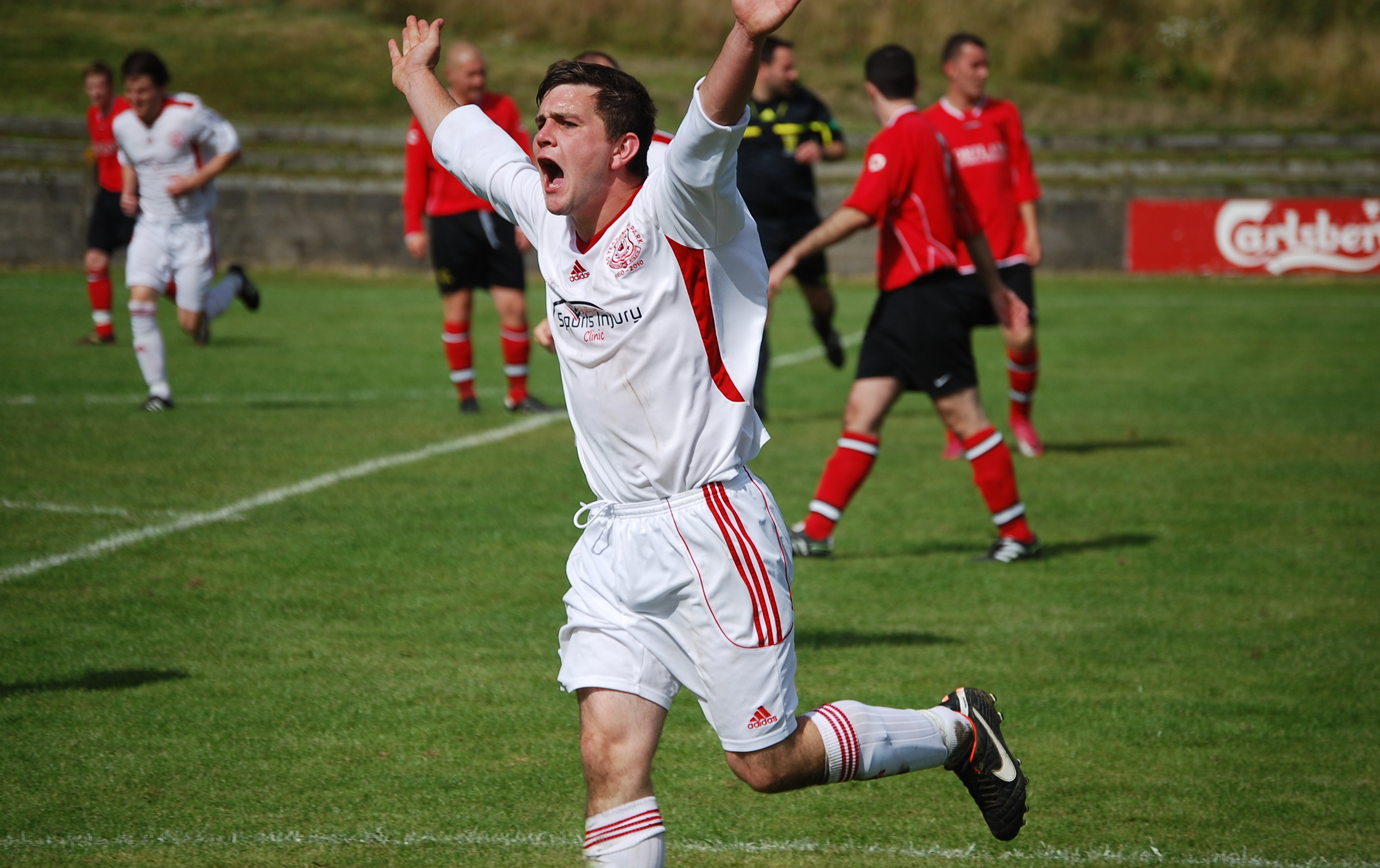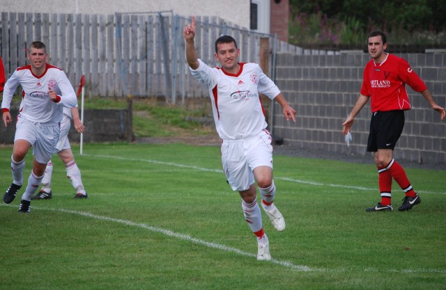 Glenafton dominated the first half in terms of possession but struggled to convert this into clear-cut chances particularly from the numerous corners won where the resultant kicks seldom caused consternation in the visitors’ ranks. The best chance came as early as the 4th minute when a close range header from Kris Mitchell was just off target; he later tested keeper Steven Douglas with a fierce shot from inside the box. Lewis Sloan was proving a handful and on 20 minutes his well struck half-volley from 10 yards out deflected off a defender and the ball looped over the bar with the keeper rooted to his line. Sadly, 15 minutes later the young midfielder appeared to pull a hamstring and was replaced by Jim Wilson.