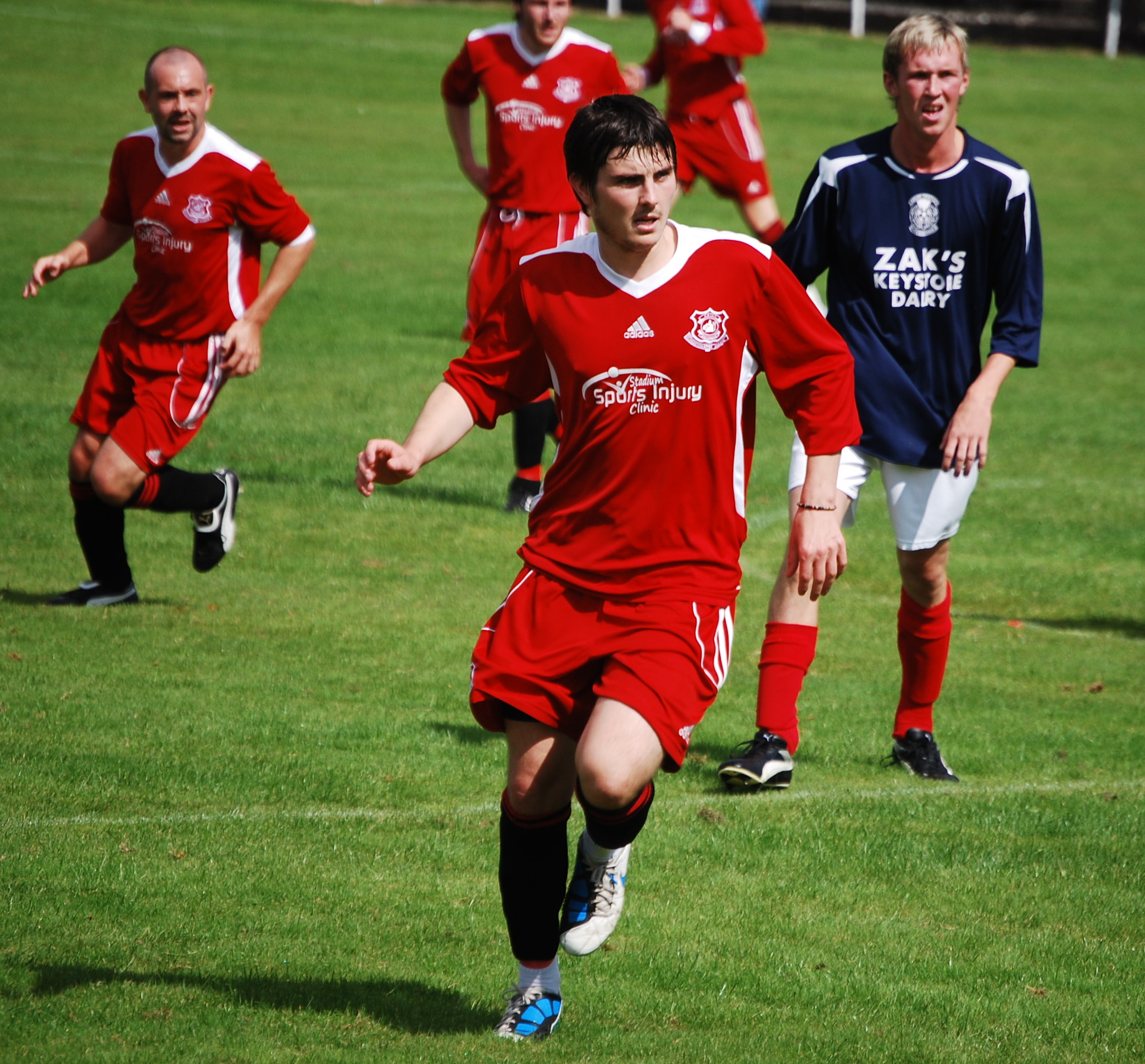 Former Glenafton forward Graeme Barbour kicked off for the hosts and both he and strike partner Davie McKenna looked lively in the opening encounters as the home side looked to build on the fine point won on the road at Girvan the previous Saturday. However, the visitors were soon exposing the frailties of the Thistle defence and in particular their offside trap which was sprung at alarmingly regular intervals but without being punished. On 6 minutes former Killie U19 keeper Chris Treacy had the woodwork to thank not once but twice when a Paul McKenzie shot from the corner of the 18 yard box bounced off the bar and Andy Bell’s attempt to volley home the rebound pinged off the post.