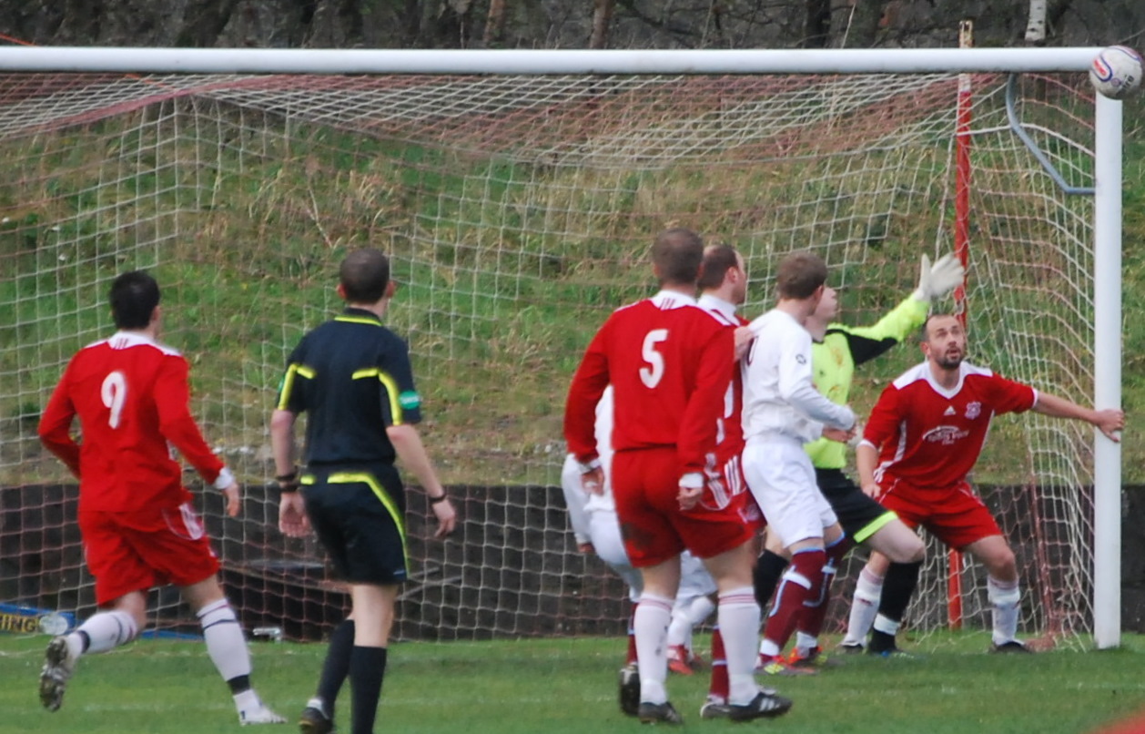 With the goal advantage the visitors took every opportunity to exploit the space vacated by Glenafton as they pushed forward to find an equaliser. White shirts flashed down both flanks stretching the home side but the final ball seldom culminated in Semple being tested. The keeper now more often than not the instigator of Glenafton attacks with long clearances up the park. On 53 minutes his counterpart Buchanan did well to block a Paul Murphy effort at the back post, who had sneaked in behind the United defence to get on the end of a Sloan cross. Six minutes later the keeper pulled off a stunning save from a Campbell volley, thundered from just inside the box. Another lightning break up down the left by United had Semple scurrying across his line and what seemed like seconds later the keeper foiled another break and prevented the visitors from doubling their lead.