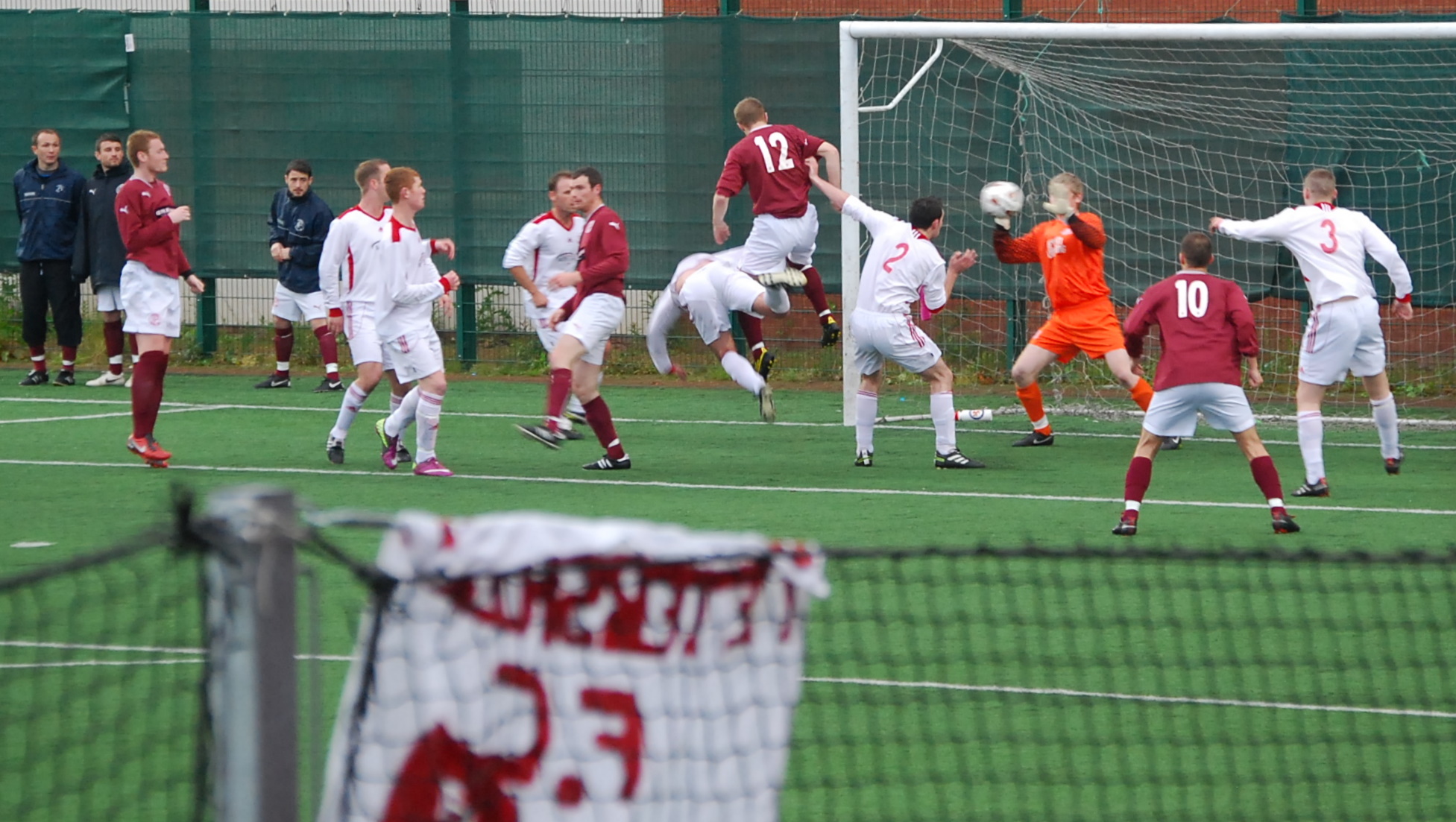 Two minutes after the restart Peasy’s Paul McLaughlin was denied by a super save from Ally Semple and two minutes after that Glens’ Stephen Docherty beat Scott Black with a thunderous shot from 25 yards but the ball crashed off the post. This heralded 15 minutes of power play from the visitors as they pinned Peasy back but try as they might with captain Willie Howie leading the way the Glens failed to the find the net. Petershill were on the ropes but the Glens couldn’t find the killer punch and inevitably were undone by a sucker-punch on 65 minutes when Stephen McGladrigan headed home a long throw from Mark McVittie. The visitors regrouped but again converting chances into goals proved elusive and McLadrigan looked to have killed off the game with ten minutes to go but for a last-ditch tackle by Ryan McChesney. In the closing minutes Kevin McBride leathered a free kick low and hard and although a deflection left Black rooted to the spot the ball went agonisingly inches wide. The home side held out for the win and held on to their Premier league status while a gallant Glenafton faced another season in the Super League 1st Division.
