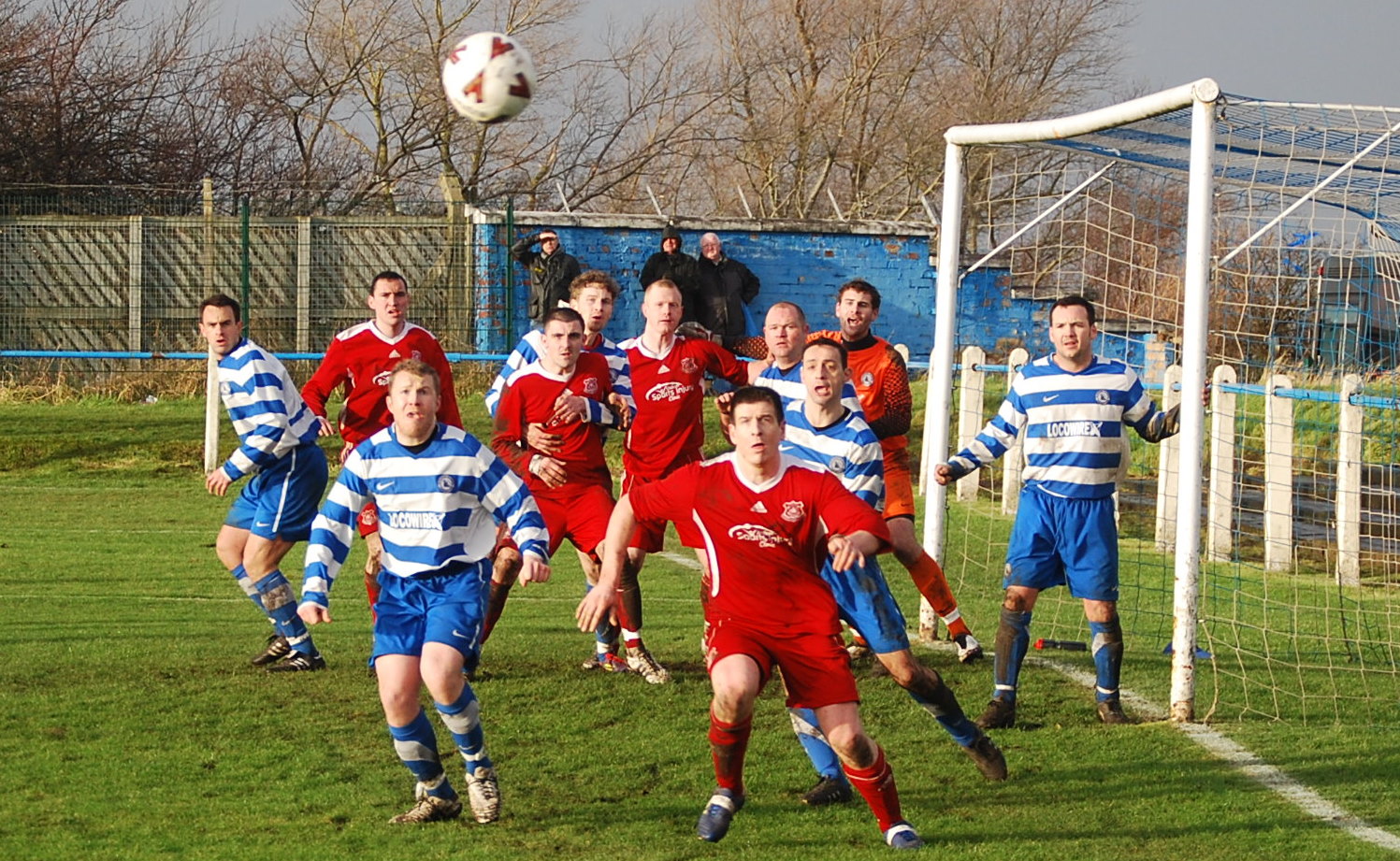 Midway through the half the Buffs made good effect of the left wing with a run by Barry Fleeting ending in a shot that was deflected narrowly wide of Semple’s far post with the keeper stranded. The resultant corner caused panic with Neil Shearer’s header falling for Lewis but his attempt to fire home was blocked by John Dempster and then Barry Russell blasted the loose ball wide.