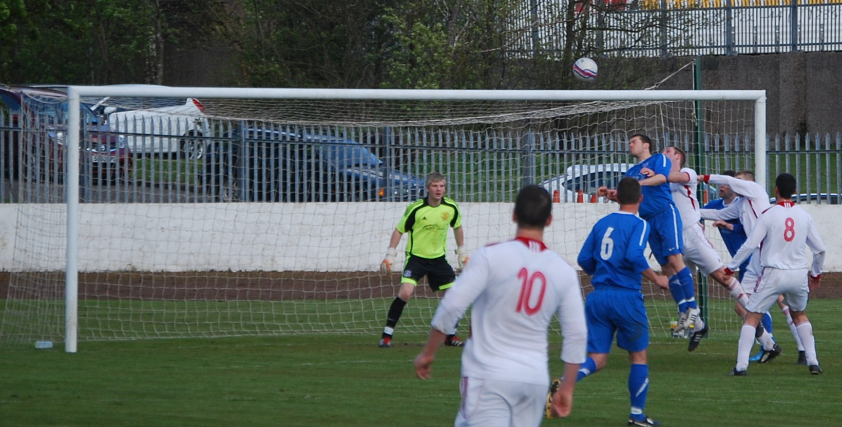 As is often the case in a game of such magnitude it struggled to rise to the occasion and the first half proved to be a tense nervy affair. With a stiff breeze at their back the visitors were first to threaten when on 9 minutes John Dempster, deep in the six yard box, tried to guide home a Richie McKillen free-kick only for the ball to spin over the bar. Two minutes later the home side responded through Graham McLaren who after shaking off defender Ryan McChesney broke into the box and drilled a low shot from 10 yards out only for keeper Ally Semple to block at his near post and then push the loose ball from the feet of the incoming Joe Barclay, allowing McChesney to clear the danger.