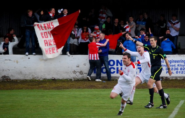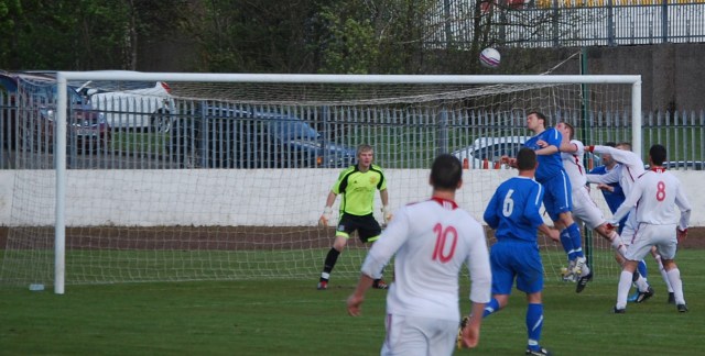 Midway through the half McChesney looked to have broken the deadlock when he bulleted a header from a corner kick beyond the reach of keeper Michael Duke but Stephen McPeake executed his near post duties with great precision for although his body was well over the goal-line the contact between his head and ball was on the line, and the Glenafton claims for a goal were in vain.