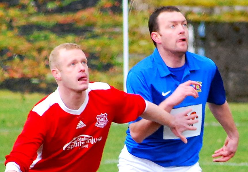 Armstrong’s aerial prowess continued to haunt ‘the McGowans’ as the Glens enjoyed the bulk of possession, however further clear cut chances were proving to be thin on a ground that was getting heavier by the moment as the light rain seeped into the saturated surface.
