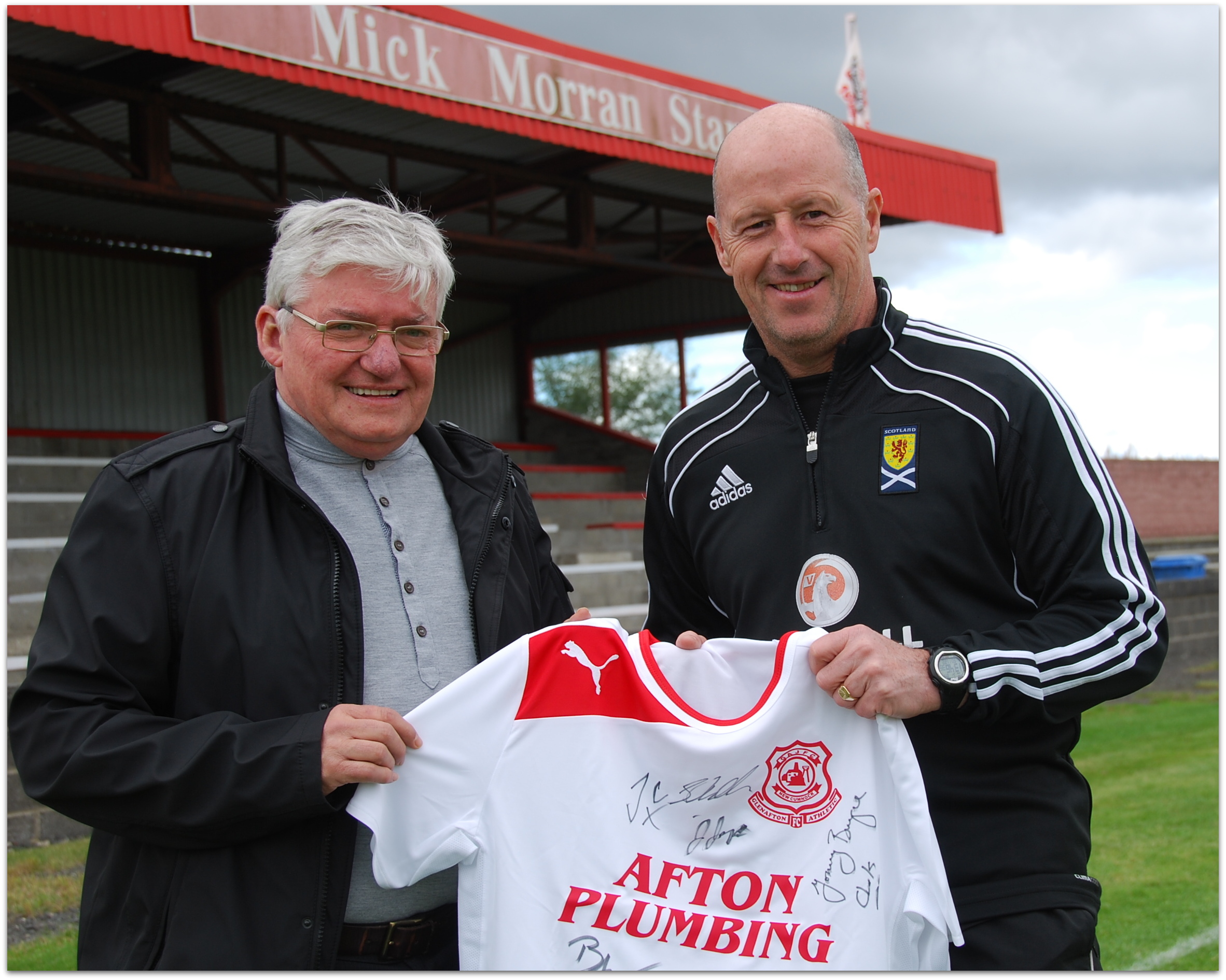 The presentation took place in front of the Mick Morran Stand, named in honour of Bill’s late father and Glenafton’s legendary physio.