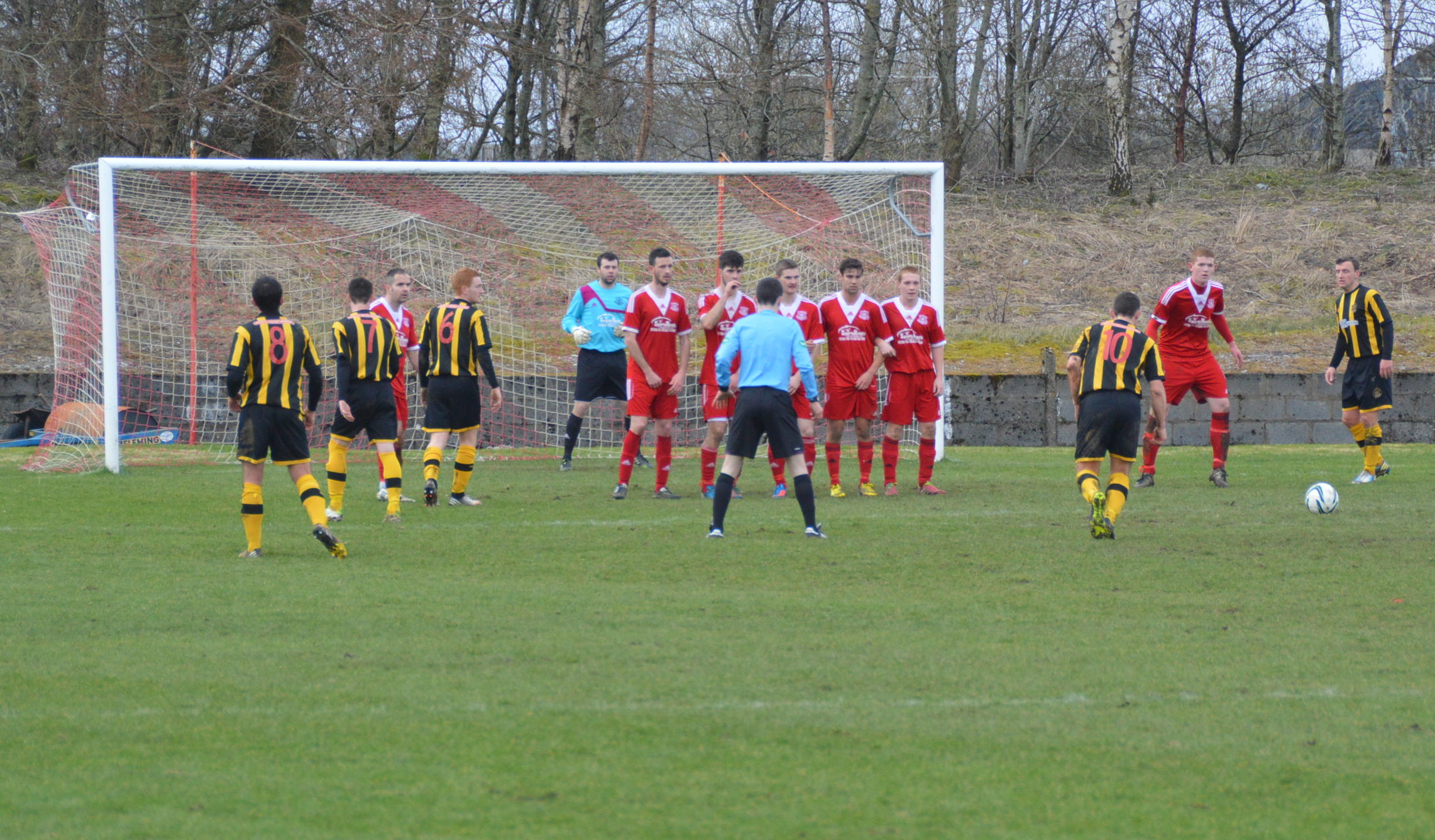 Glenafton rallied and a neat one two by Kinney and Marlow by-passed Pettigrew only for Willie Lyle with a timely tackle rob Marlow in the box. Soon after, ten minutes from the break, Marlow skipped past John White and drove into the box before drilling a low shot from 8 yards out which although went through Leishman’s legs, the ball’s pace had been killed giving the big keeper time to swivel and smother the ball.