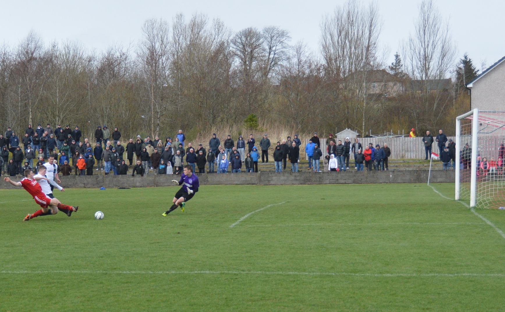 On the hour mark an eventful Scottish Junior Cup Quarter-final (over both games) came to an untimely end for Ryan McChesney after his tackle on Montgomerie earned him a second yellow card. However, the home side rallied and Menzies, McEwan & Alan Cairns teamed up manfully to negate the loss of their fellow defender while McKernon and Frye began to completely boss the middle of the park.