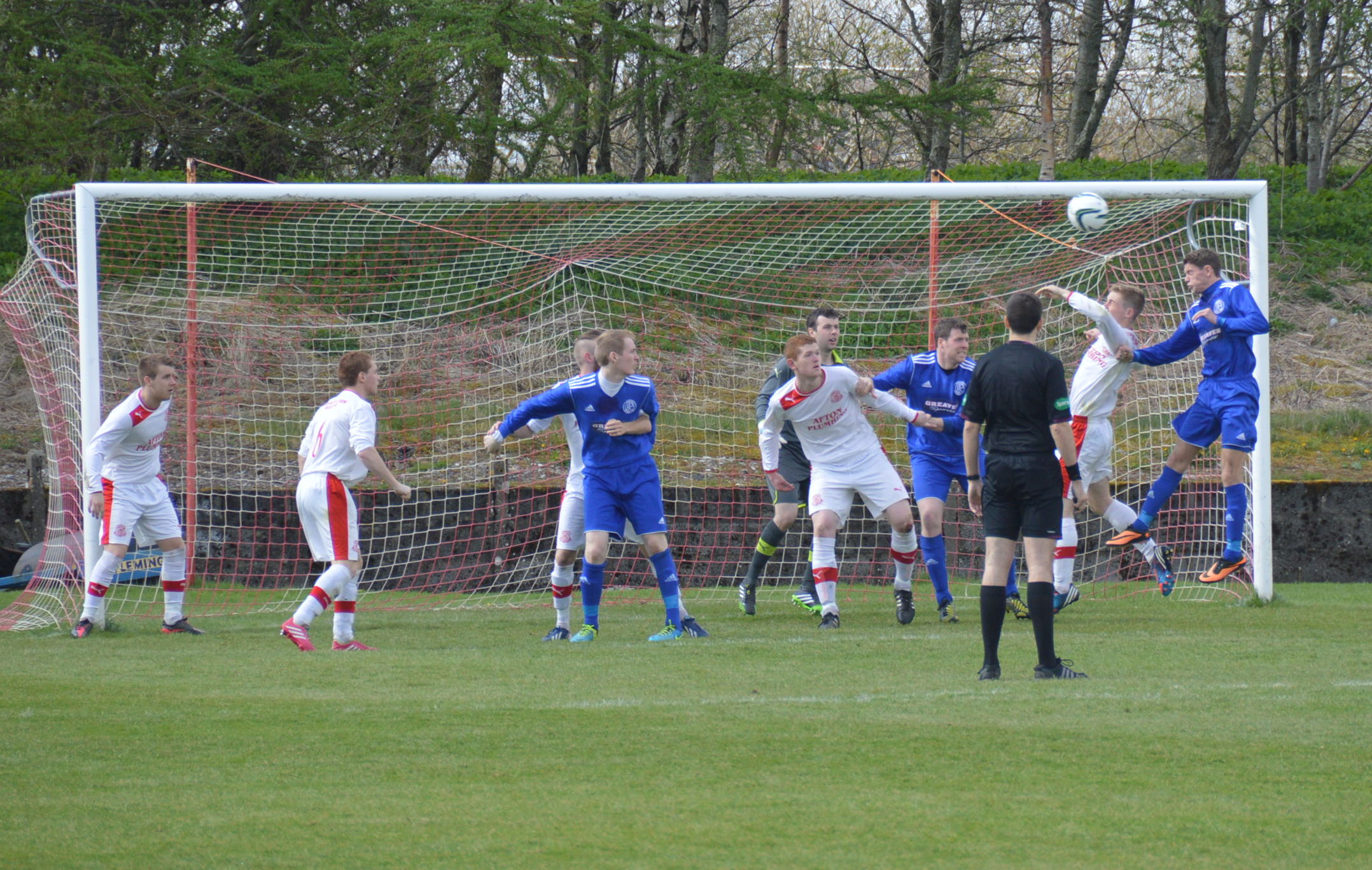 Back came the home side and several set pieces came and went with the visitors’ goal still intact. With 5 minutes to go another corner-kick for the Glens saw McGill and Marlow rise at the back post, with the latter winning the header which just popped over the bar.