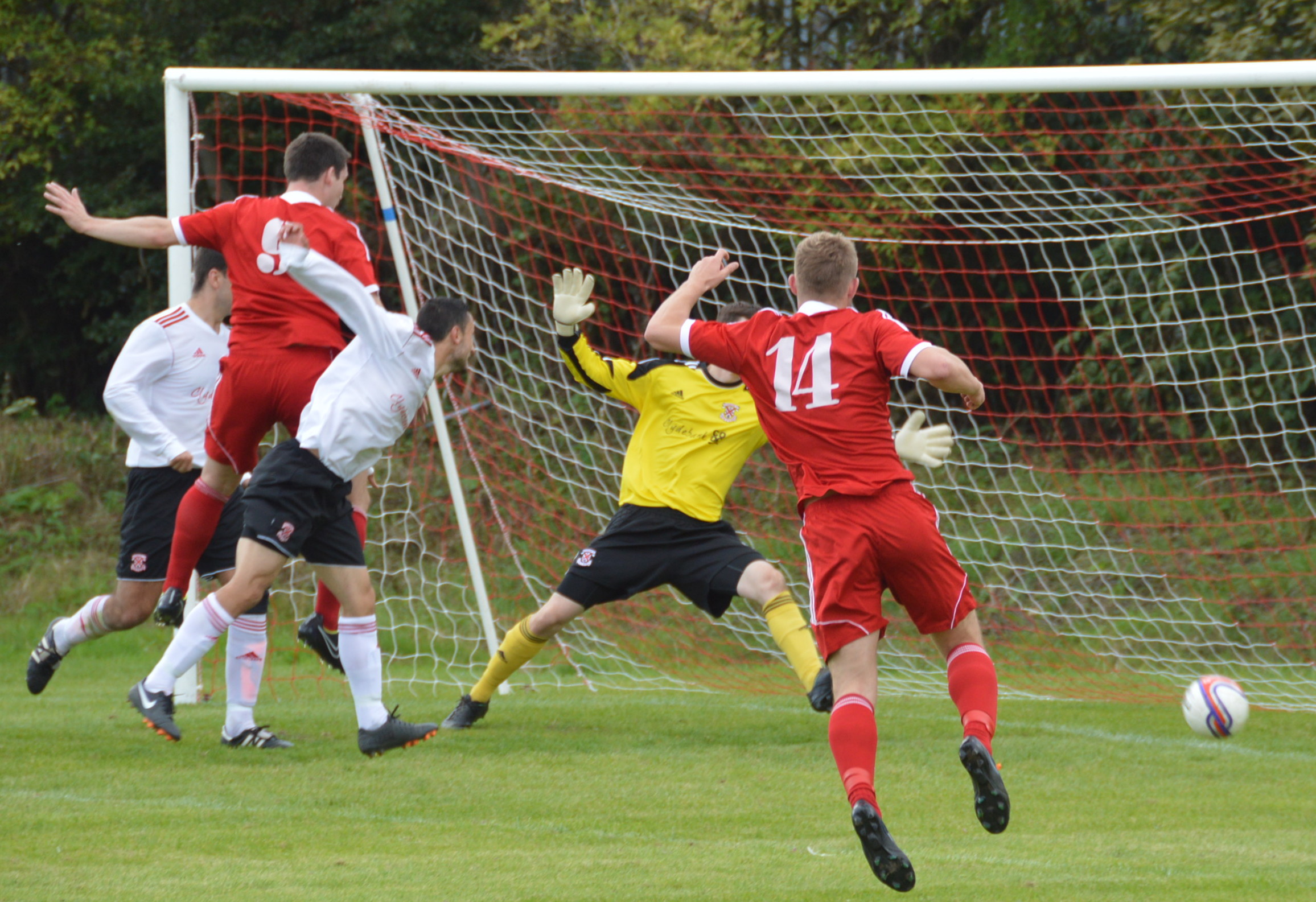 Glenafton enjoyed their best spell ten minutes before the break. Former Bankie Adam Strachan tried his luck from distance and keeper Robert Hamilton, wrong footed by a deflection, was glad to see the ball goes inches wide. Two minutes later Strachan’s short corner initiated a game of head tennis in the Bankies box before the ball was cleared only for it to be gathered by Michael Wardrope and his shot from 25 yards pulled off a great save from the keeper, Hamilton at full stretch pushing the ball past the post. This corner too was only partially cleared before Jamie McKernon recovered the ball on the outskirts of the box and his snap shot finished wide of target.
