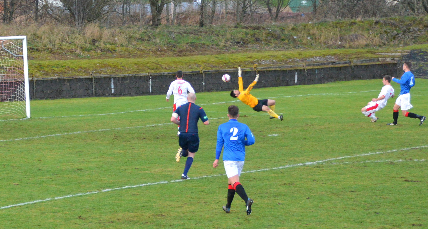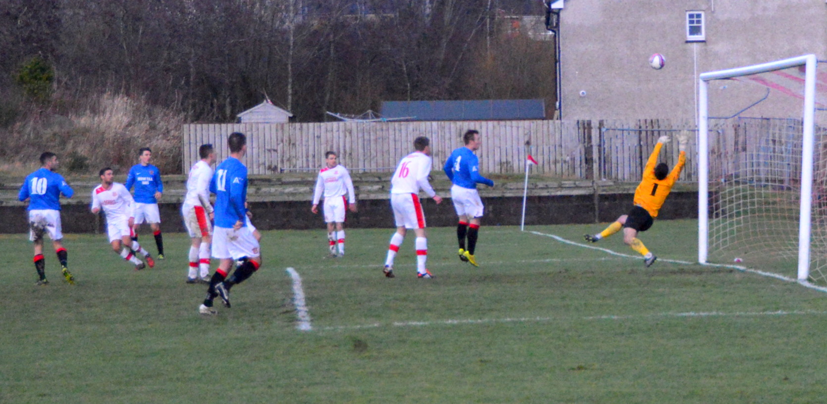 First, Strachan’s effort was blocked by Twaddle sending the ball spinning to the other side of goal forcing Shepherd then to race to the corner of his six yard box and pull off a stunning save from Michael Wardrope’s powerful angled drive and finally the recovering Twaddle blocked Marlow’s attempt to net the loose ball. H/T Glens 1 Meadow 1