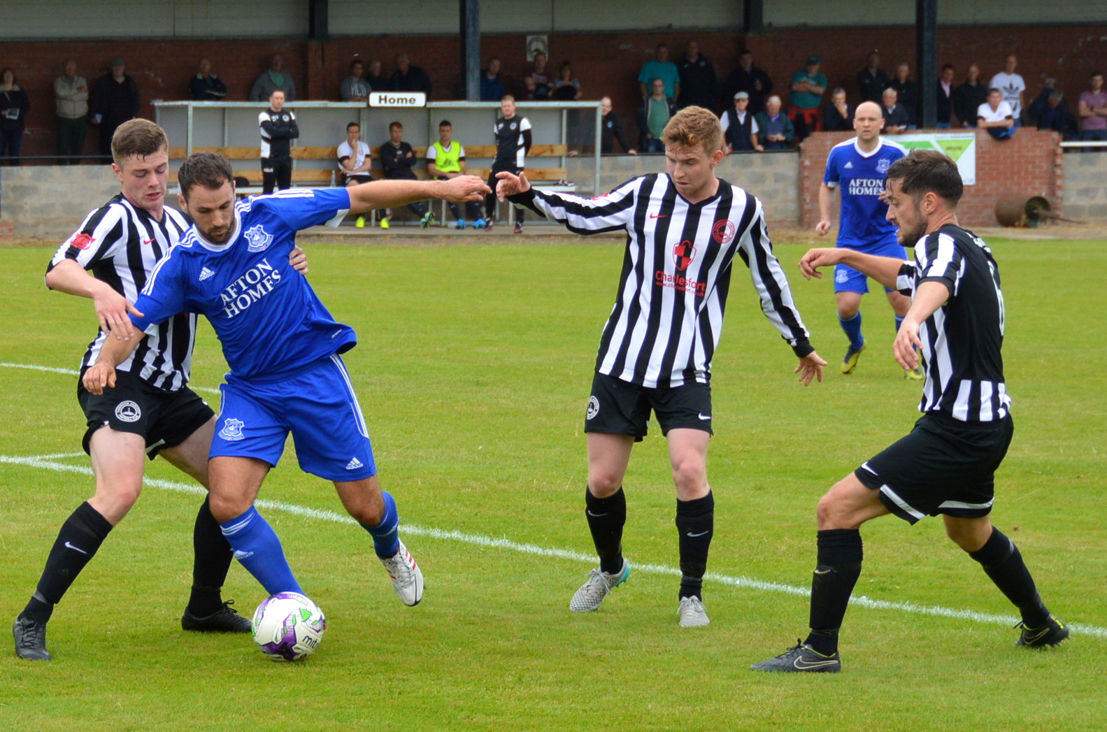 Glenafton then enjoyed a good period of pressure with Chris Malone at the heart of the action. With 33 minutes gone McCann slipped the ball down the right flank for Ally Park on the overlap and from the corner flag cut the ball back into the box where it was met first time by Malone and although his shot beat a line of ‘Nock defenders Baker got down low to pull off another good save. Three minutes later Malone burst into the box to gather a McGuffie knock-down and outfoxed Baker at the near post before sending a square ball across the face of the goal only for Wood to get a foot to it as McCann threatened to pounce.