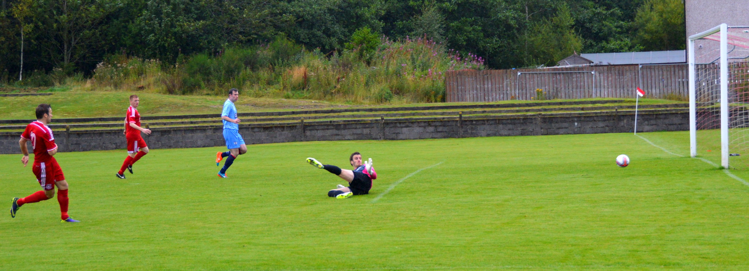 The home side responded well and were enjoying a lot of the ball without however creating any clear cut chances. Indeed it was Hurlford that came close to doubling their lead on 17 minutes after David McClune appearing to line up to loft a free kick into the box but instead opting for a long range shot which was just wide of the junction of the post and bar.