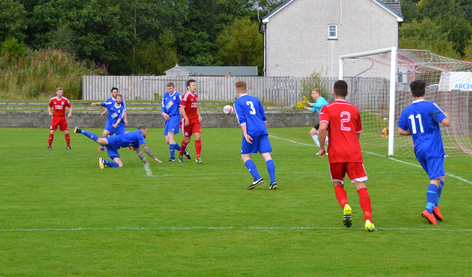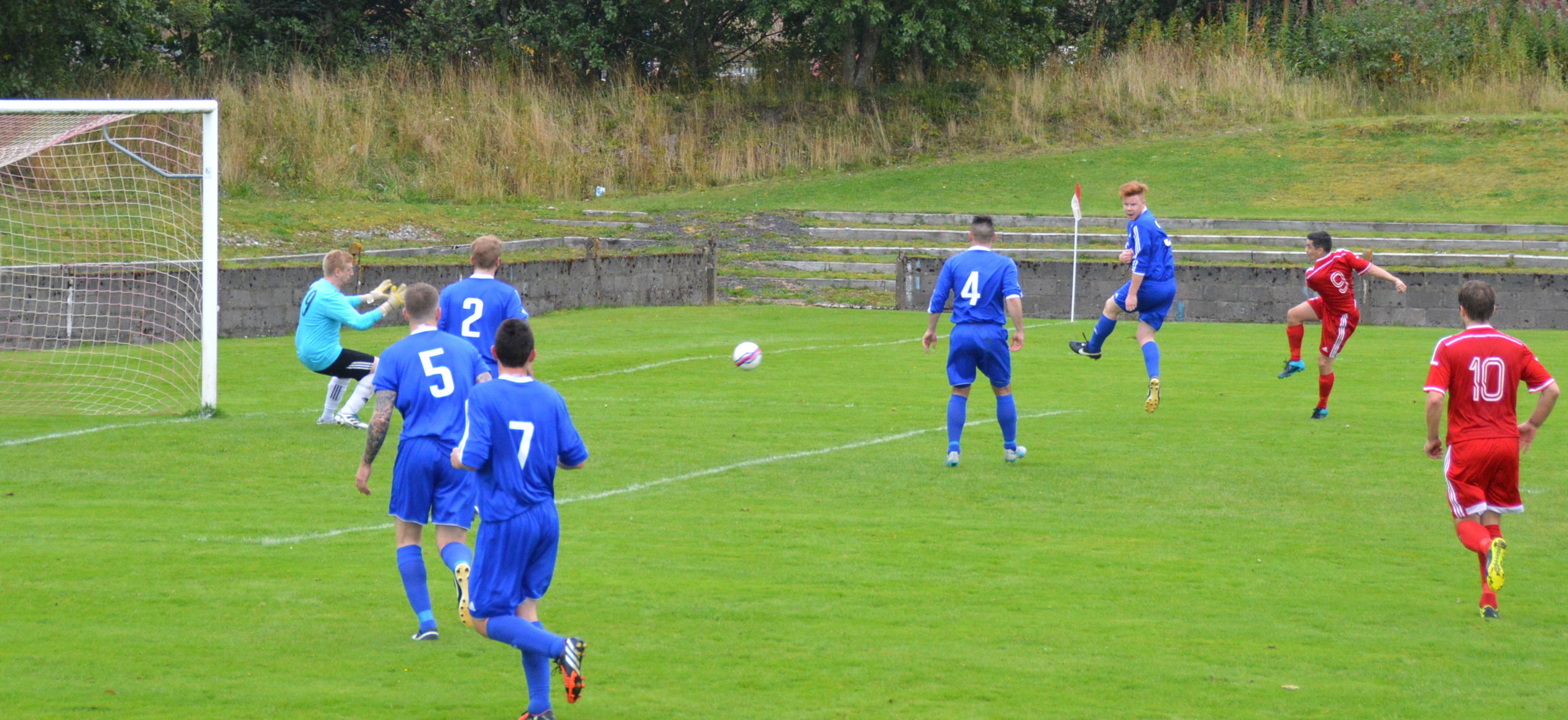 Four goals in a five minute spell for Glenafton effectively killed off thi s Scottish Junior Cup 1st round tie with just over quarter of an hour gone. Dan Orsi started the ball rolling getting down on the six yard line to head home a corner kick on 11 munutes.