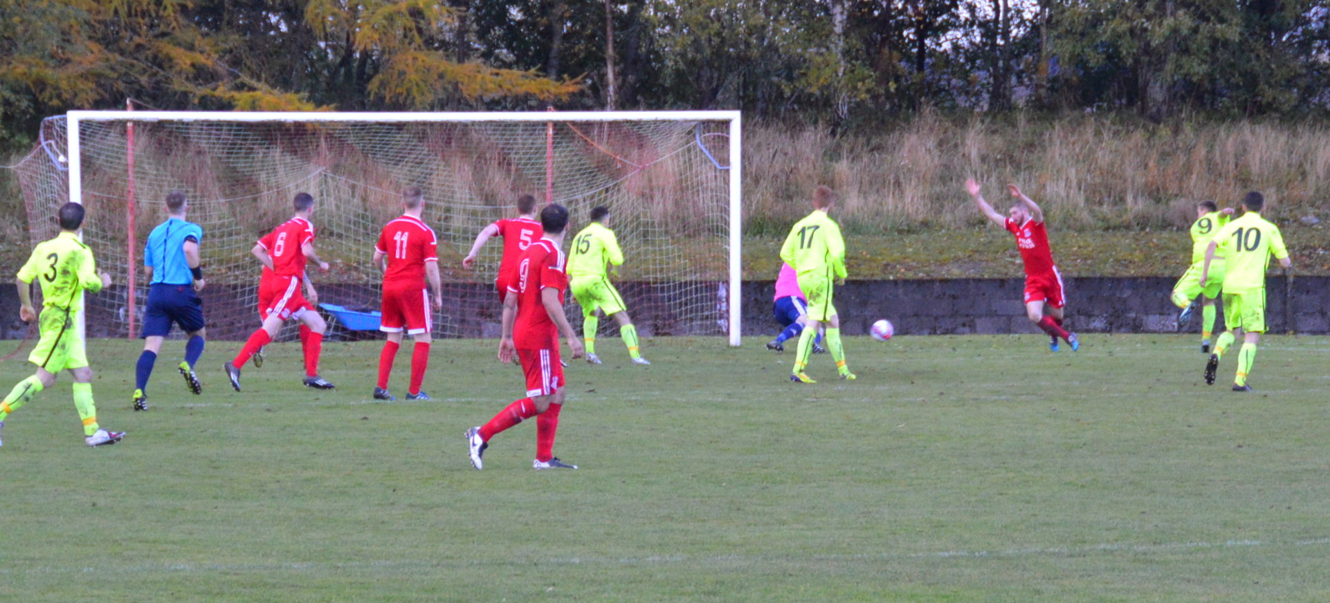 Back came the Glens through Park, who with his progress deeper into the box blocked squared the ball for McGuffie only for his shot from 18 yards to go well wide. Orsi then shook off Anton before bursting into the box only to be bundled to the ground by player-manager Ross Gunnion, his appeals for a penalty quickly dismissed. A Glens’ free-kick into the box was eventually gathered by Mitchell before Orsi’s angled-drived whizzed wide of the far post.