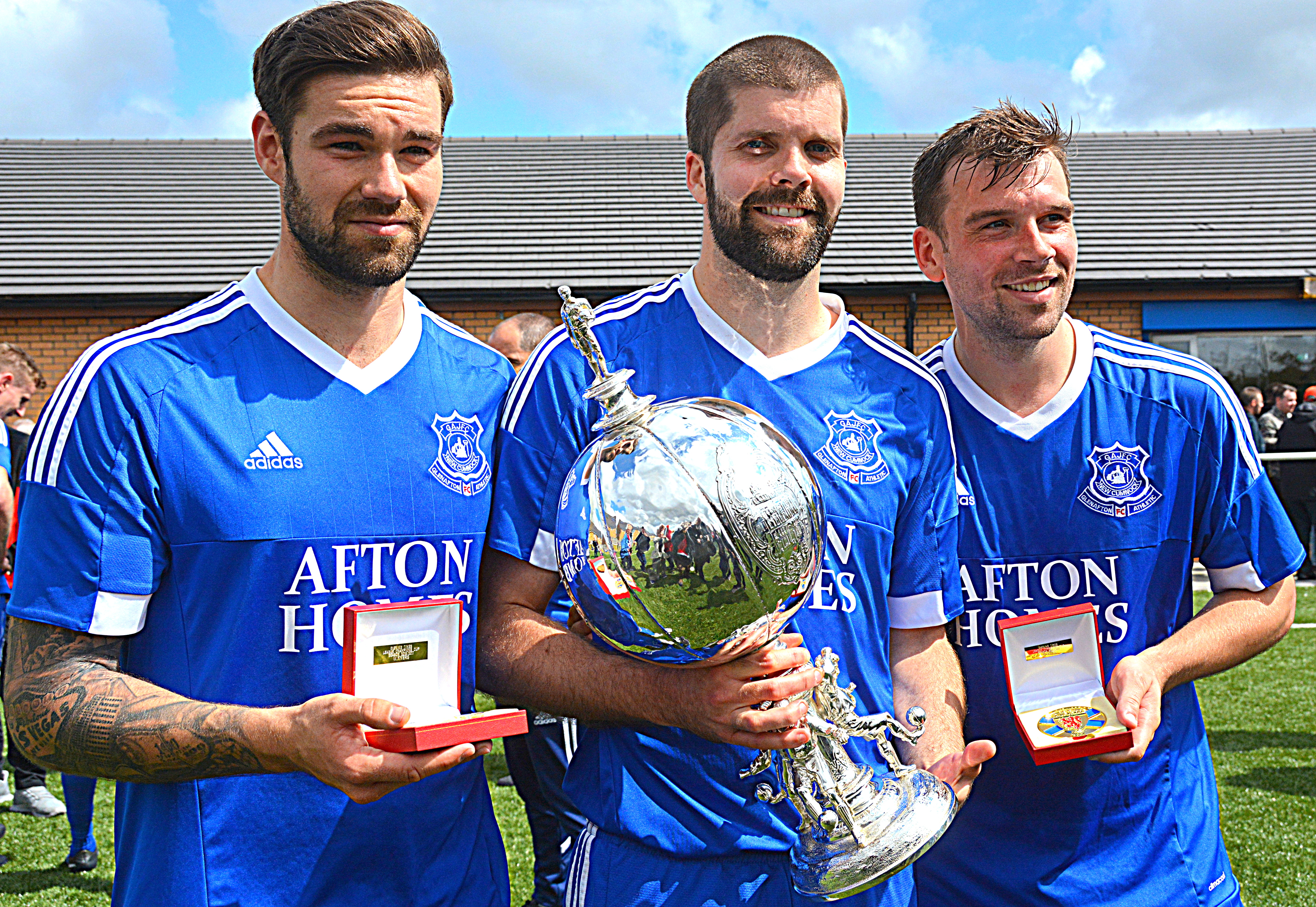 Goalscorers Cameron Marlow and David Gray with captain Craig Menzies holding the cup.