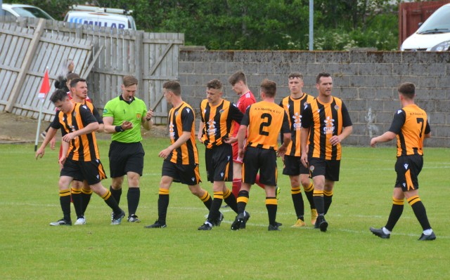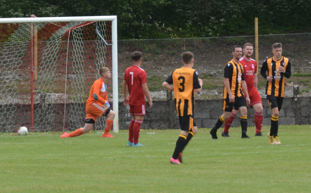 Nohar made a break down the right and his effort from outside the box also dipped over the box while at the other end Blair McIntyre’s attempt to lo the advancing Sloan drifted wide of the goal mouth. In the last action McKee’s free kick from distance stung the fingers of McGowan before the handshakes.