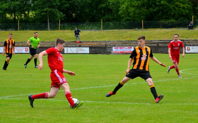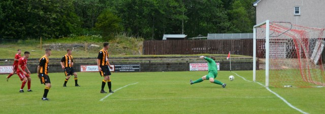 Glens countered through Blyth picking up the ball with his back to goal only to be wrestled to the ground by the attentive Forbes. The young striker stepped up to take the free-kick and from 30 yards out lashed a shot beyond the reach of keeper Jamie McGowan at full stretch to bulge the net almost to bursting. Glens 1-0 after 12 minutes.