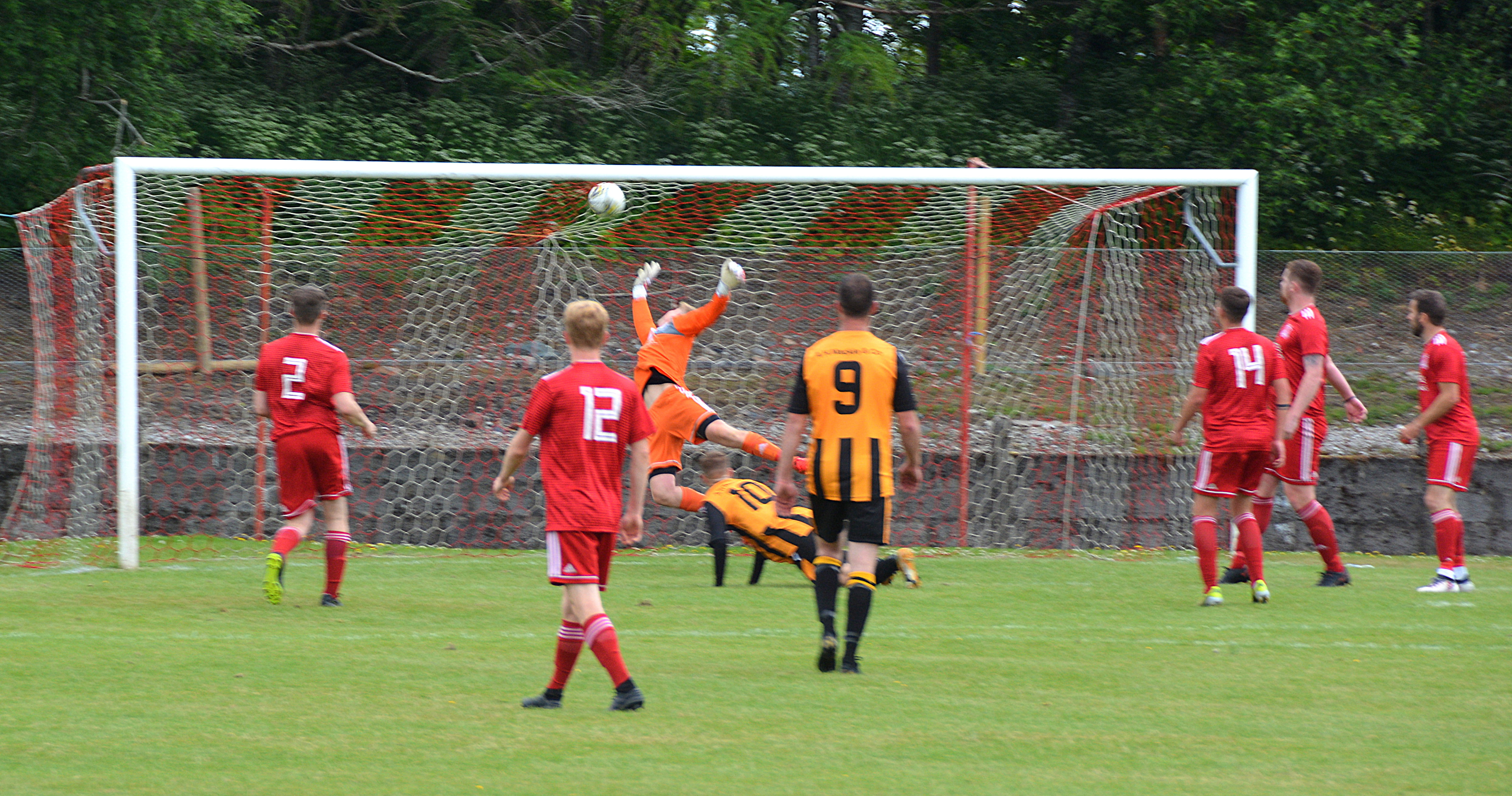 A brief respite for Glens before back came Largs and Sloan pulled off a great save from Milliken’s close-range shot. Soon after Trialist14’s effort from the six yard box dipped over the bar.