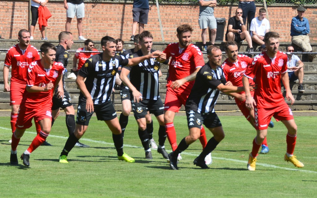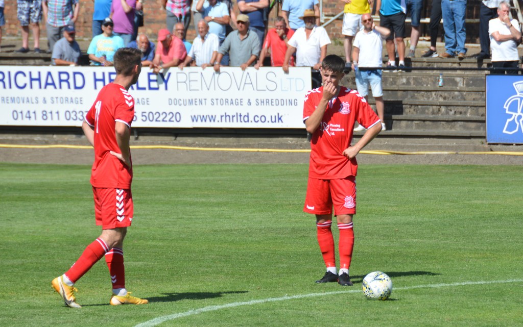 At the other end Leon Murphy’s ball into the box was deflected high into the air and on its descent keeper Jordan Longmuir punched the ball from the head of Jordan Ryan.