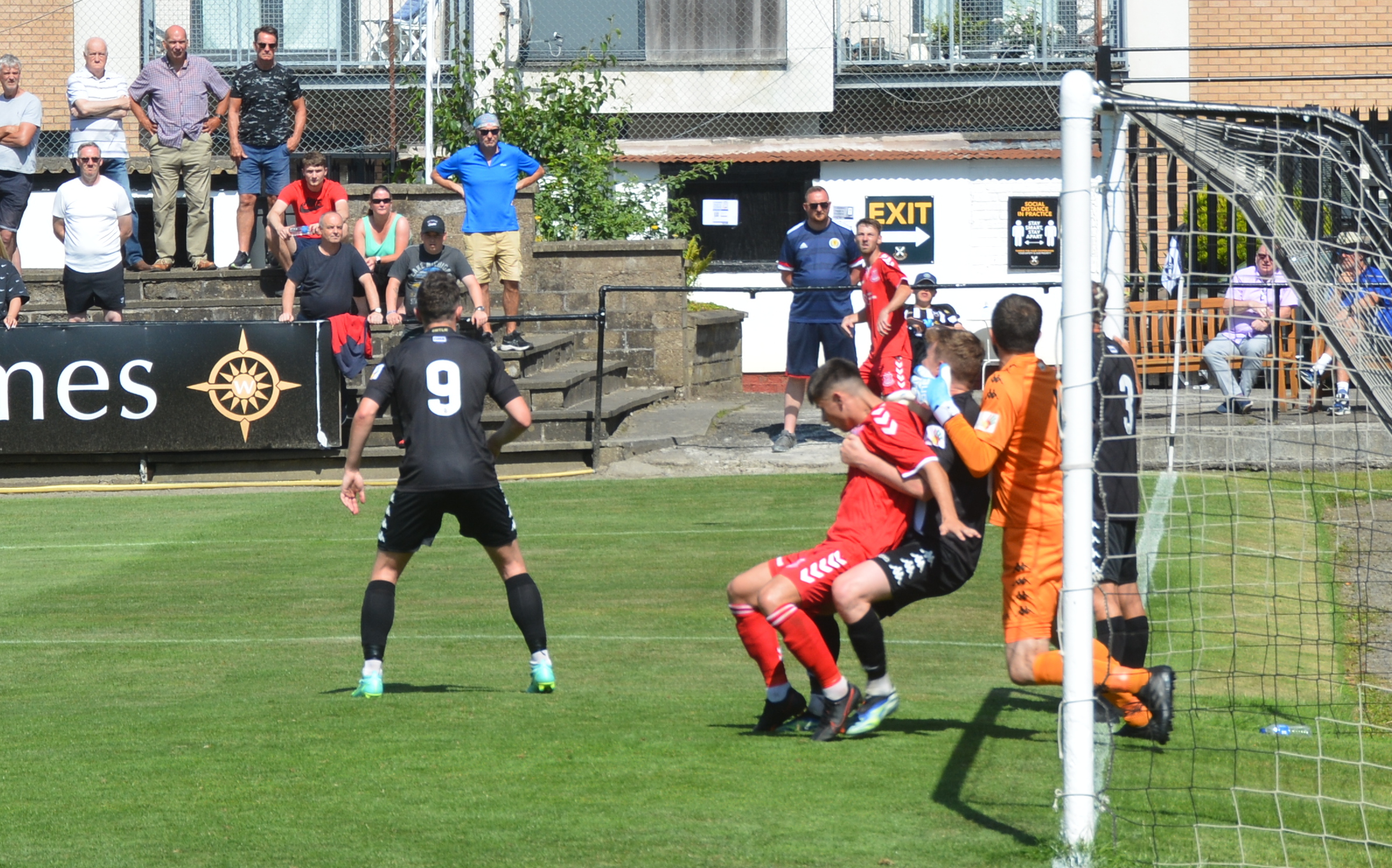 Glenafton kicked off with the glorious Newlandsfield pitch bathed in equally glorious sunshine. It was former Pollok keeper Scott Johnson that was first called into action getting down low to save a low shot angled shot from Matty Grant.