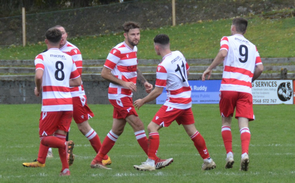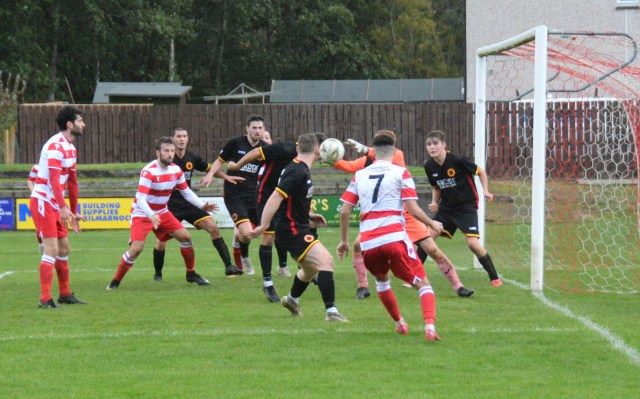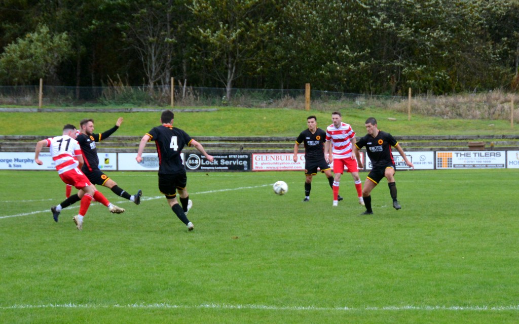 Blyth’s powerful run down the right won Glens a corner that Blyth clipped into the box where Pettigrew’s volley was deflected off target and then cleared by Hogg.