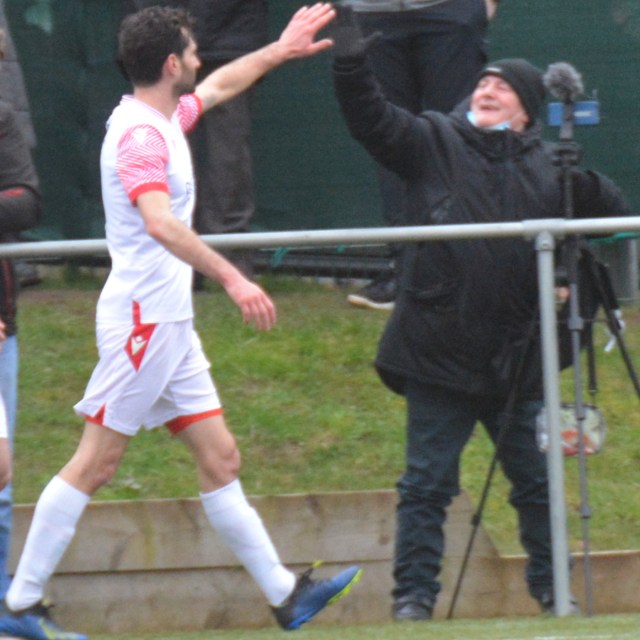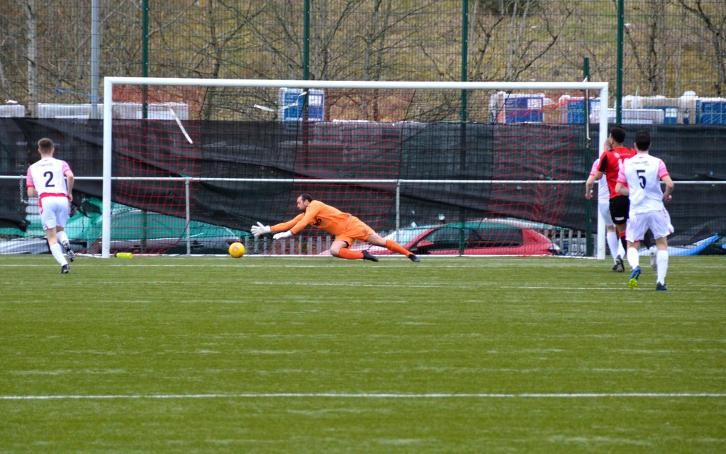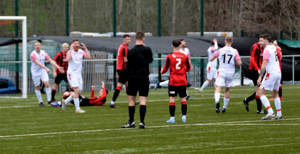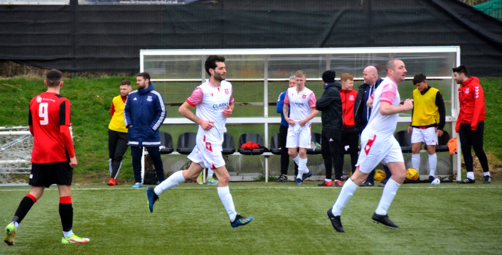 The visitors continued to press and a ball through the middle for Leon Murphy to chase down saw keeper Jamie Leitch rush from his line to intercept but on doing so stepped outside the box to grab the ball with both hands. After discussion between the match officials the referee sent the unfortunate Leith off and the home side were down to 10 men on 12 minutes. Sadly, for goalscorer Walker he was the sacrificial offering for the replacement keeper; who wasn’t immediately tested as the wall stood up to the free-kick.