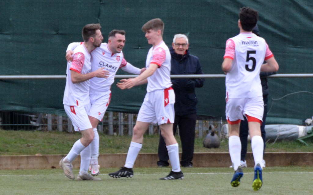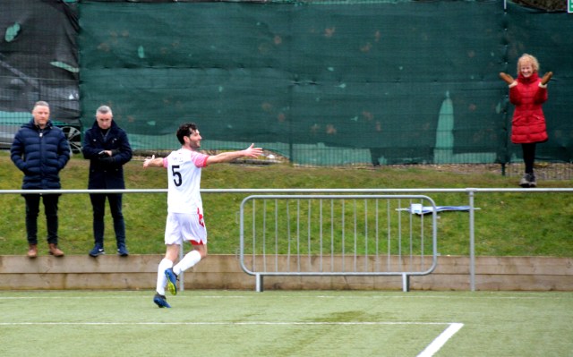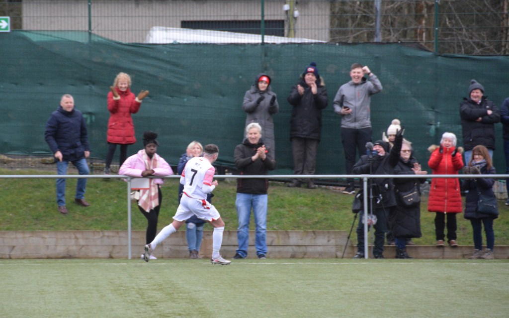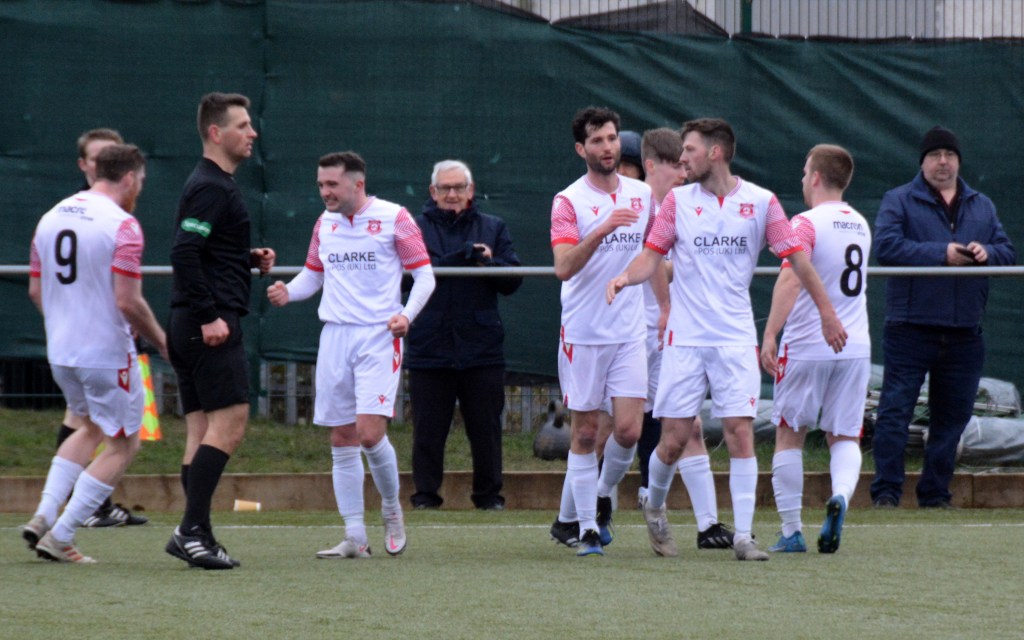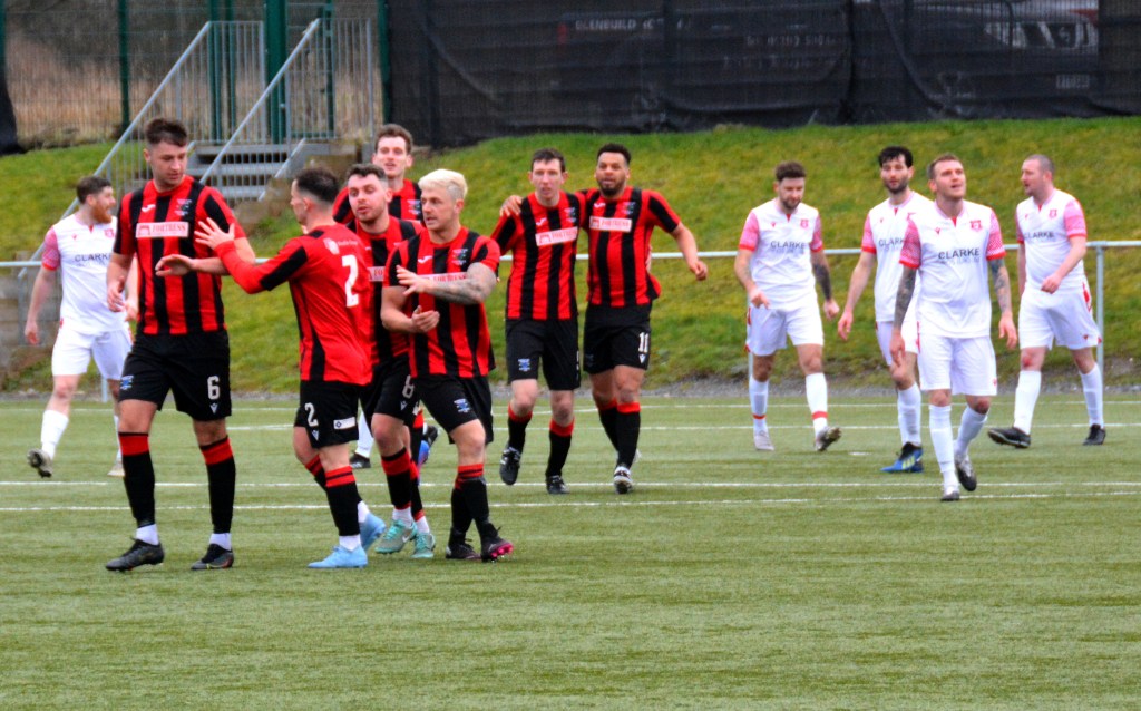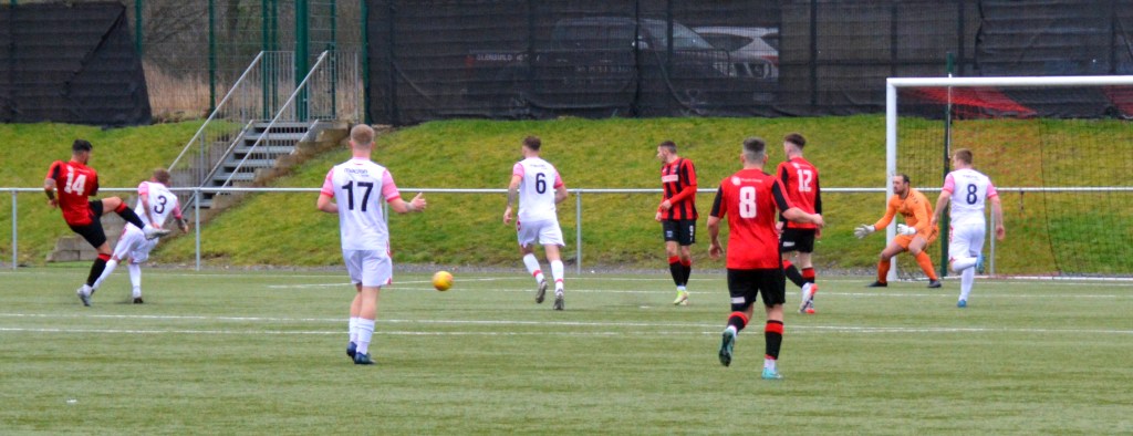 The home side got off to flying start with a goal from Ryan Walker, the son of Glens legend Davie ‘Pele’ Walker, on two minutes. Sandy Robertson, from the centre circle, clipped a high ball into the right-hand side of the box for Walker to gather before lashing a low shot from the 18 yard line into the far corner of the net beyond the reach of keeper David Markey at full stretch.