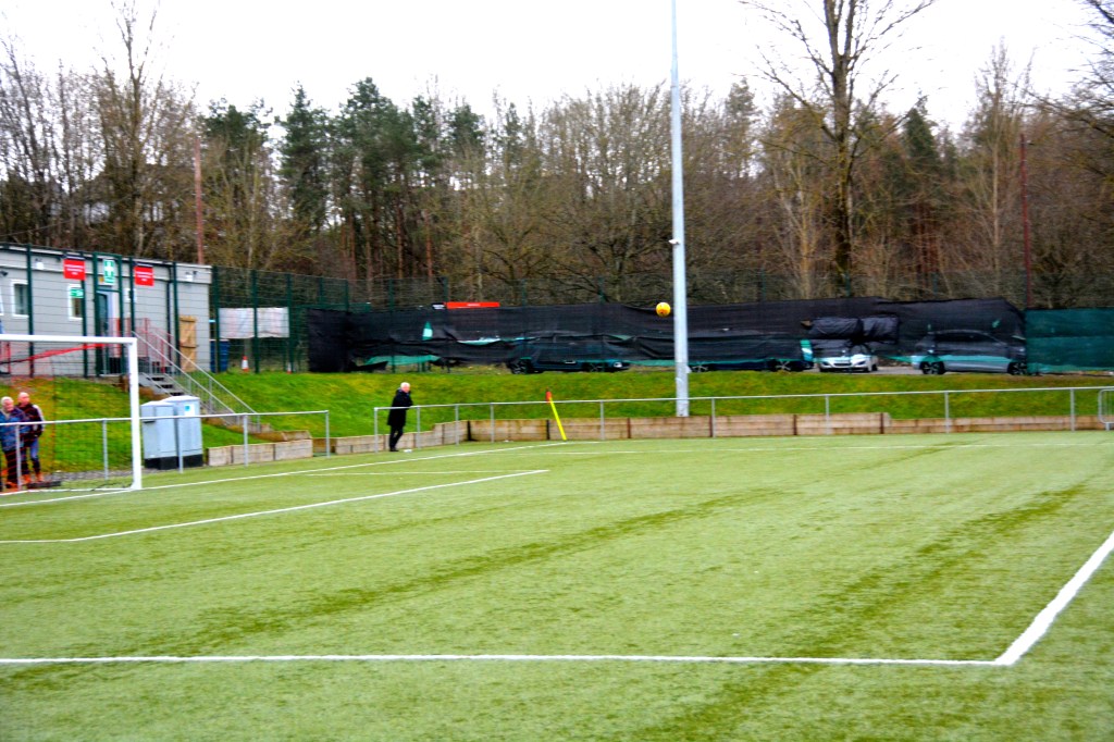Glens countered in lethal fashion. Sean Bennie deep in his own half picked up a ball from Murphy and pushed down the right while Nisbet bided his time at the centre-circle to spring the offside trap as Bennie rolled the ball down the wing into acres of open space for the unimpeded Ryan Nisbet to hunt down and draw the keeper from his line (indeed outside the box) before lobbing the ball from 30 yards into the welcoming net. The Glens 2-1 up as the half-time whistle blew.