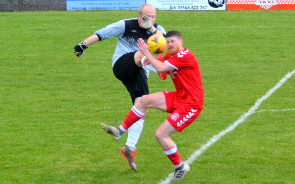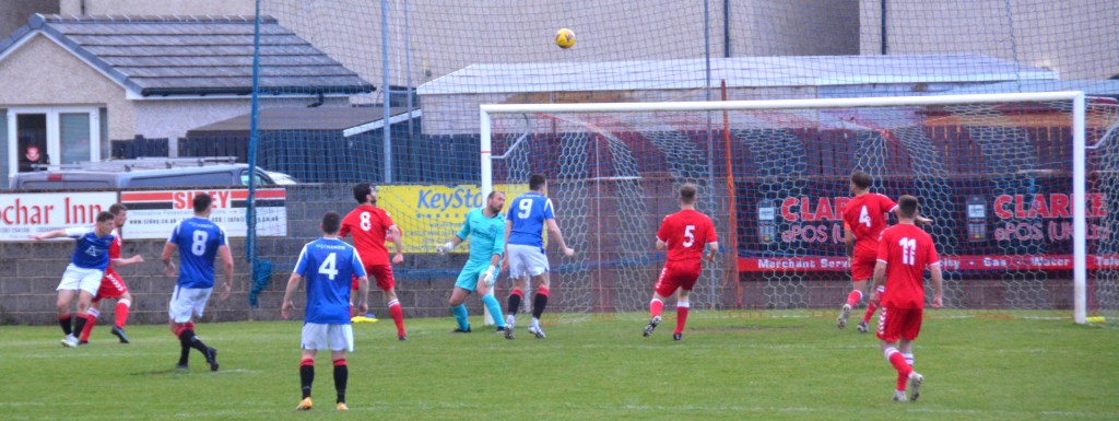 Both sides pushed to get their noses in front before the break with the home side creating the best of the chances. Kerr got the jump on two defenders to gather the ball in the ‘D’ sending it high in the air with his right and then meeting it on the drop with his left, only for the outrushing keeper to get a hand to it and Wylie boot the loose ball clear.