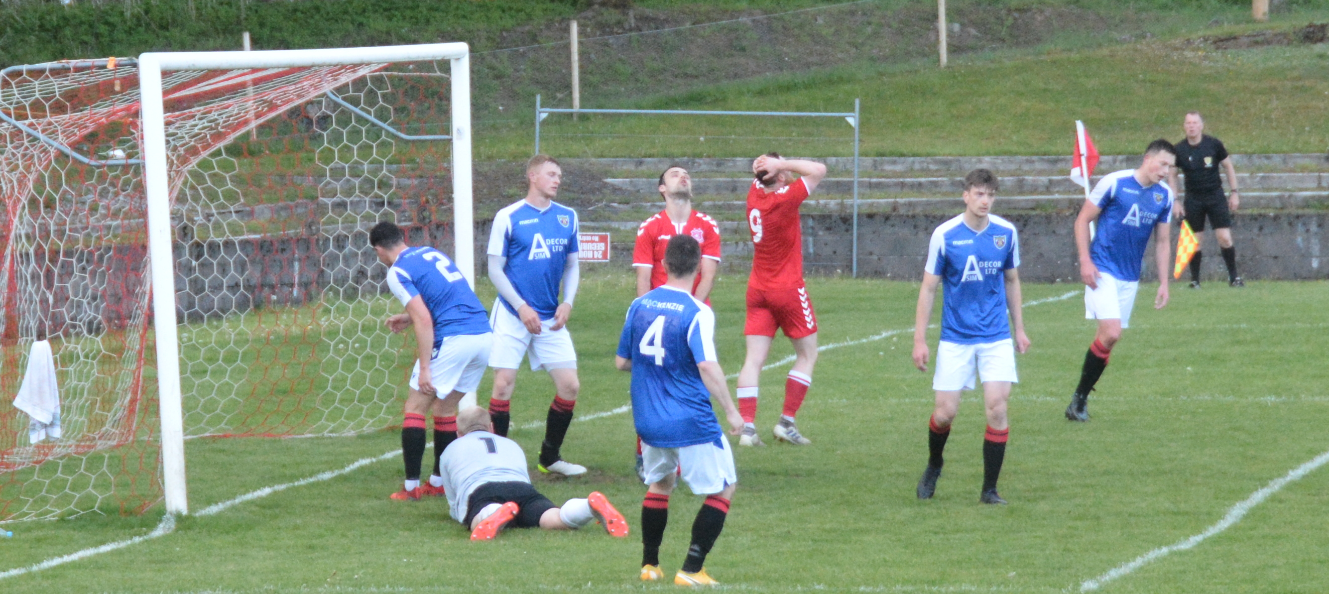 Two minutes later Meadow cleared the ball only as far as the centre circle where Rowe powered a high looping header to the outskirts of the box for Kerr to trap the ball and before Findlay and Lyle could close him down, he lashed a ferocious volley that beat Waters on his six-yard line only for the ball to dip over the bar.