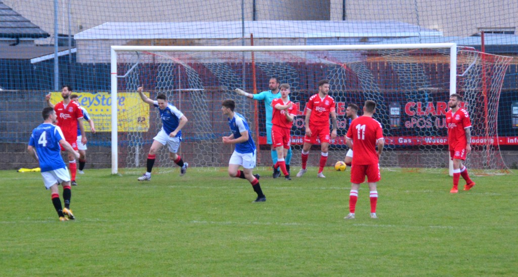 Midway through the half Kemp weaved his way down the right flank and with some assistance from Ryan before he curled the ball into the box for Murphy only for Lyle to intercept but his header fell for Kerr in the ‘D’, to take a touch and lash a low drive that drifted wide of the post.