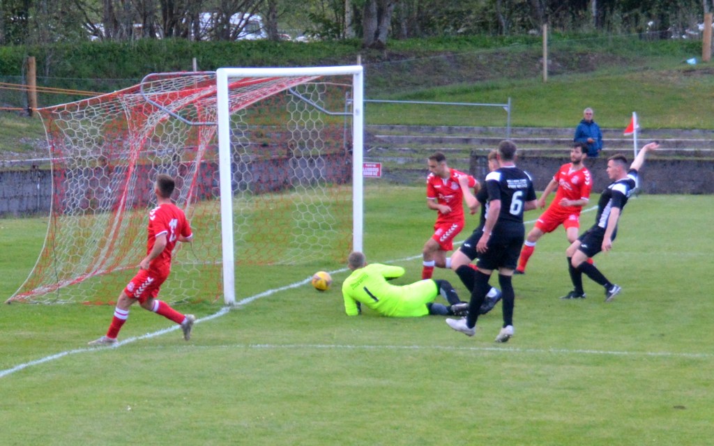 Glens were forced into an early substitution on 10 minutes with Sam McKee replacing the injured Calvin Kemp. Jordan Ryan opened the scoring for the home side on 16 minutes and Sam McKee doubled their lead.