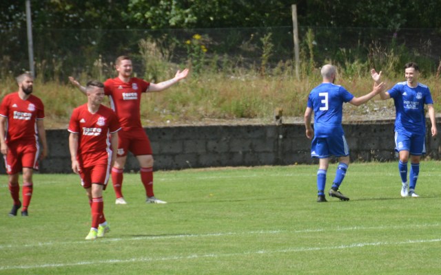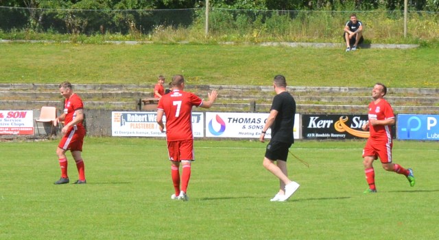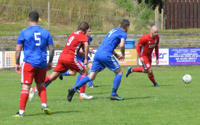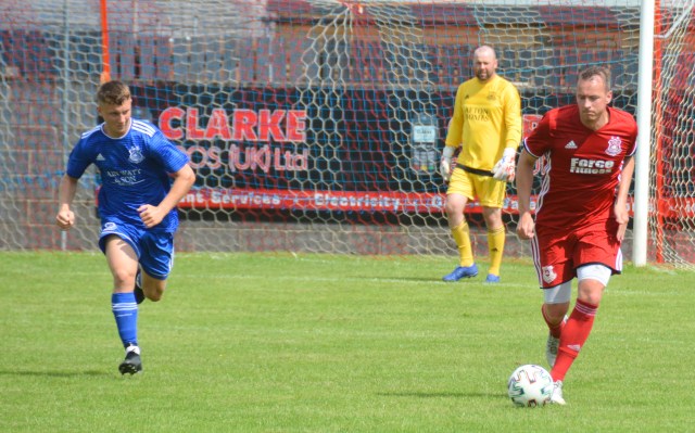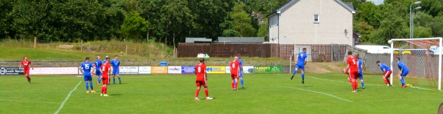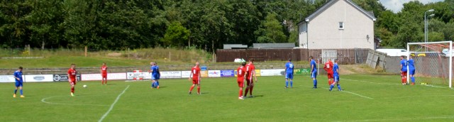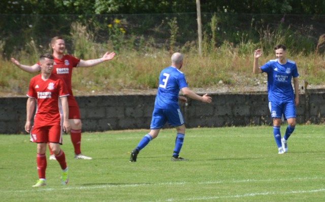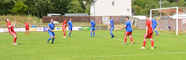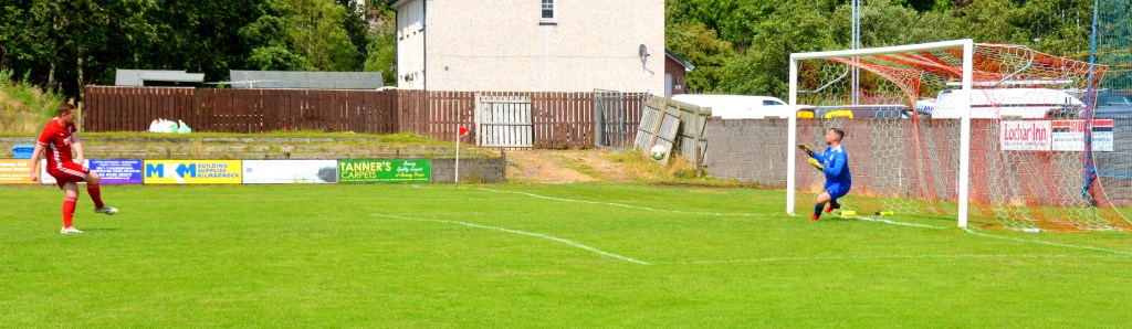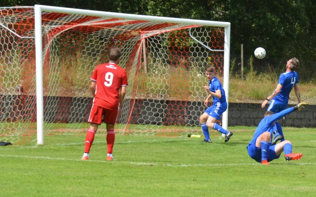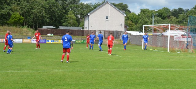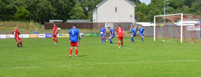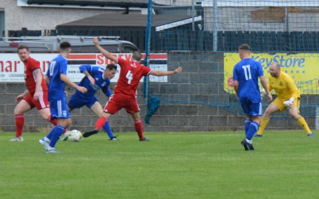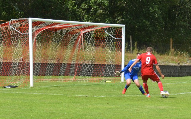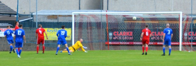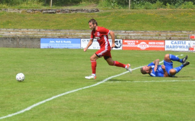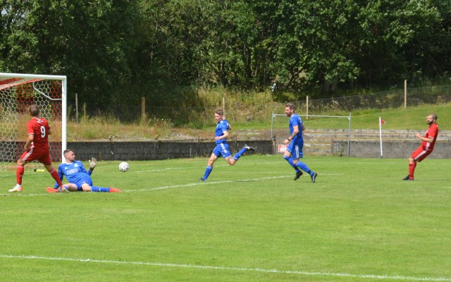 The Reds countered with a wonderful passage of flowing football. Meikle won the loose ball and slipped it to McAnespie who clipped the ball up the left wing where Gray gathered before feeding Ally Park still deep in the Reds half, who squared it to Potter, who picked out Joe Andrew in the centre circle who then squared to Park, who in turn clipped it forward to Gray wide on the left who stroked it infield for Andrew to push forward and try chip the keeper from 20 yards only for the ball to dip over the bar.
