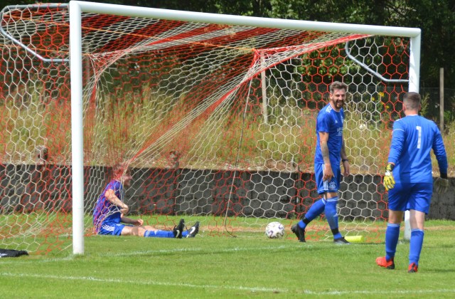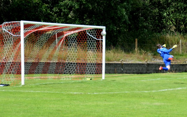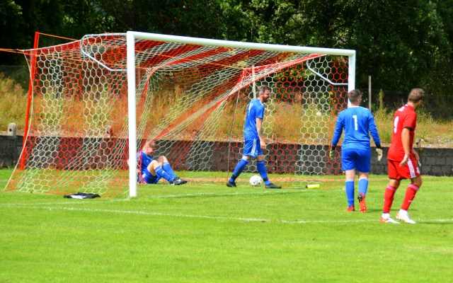 Another attempt to set up Chessy for a goal saw the former Glens youth striker fire wide of target. On 65 minutes another opportunity fell his way after Marlow was adjudged to have handled the ball in the box and the Reds were awarded a penalty. The tension mounted as the Ginger Chessy gingerly stepped up to the spot, laughing and joking but no doubt the nerves were tingling – no danger, as he slammed the ball from 12 yards. Reds 5 Blues 2.