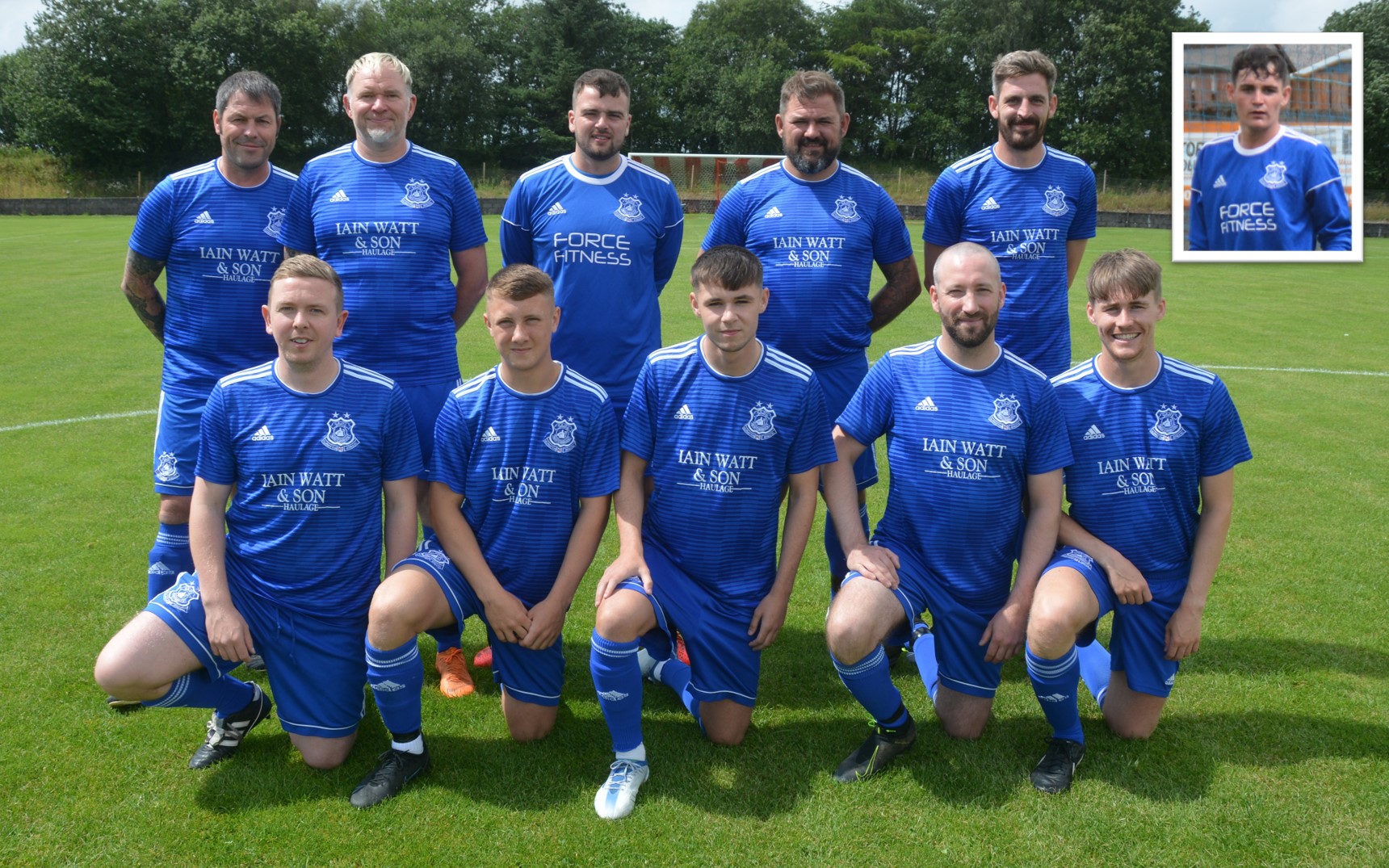 Back Row: Joe Andrew, Chris Meikle, Ryan McChesney, Brian McGarrity, Craig Menzies, David Gray Front Row: Craig Potter, Conor Lynass, Ally Park, cameron Marlow, Kieran McAnespie (27 mins), Mick McCann.