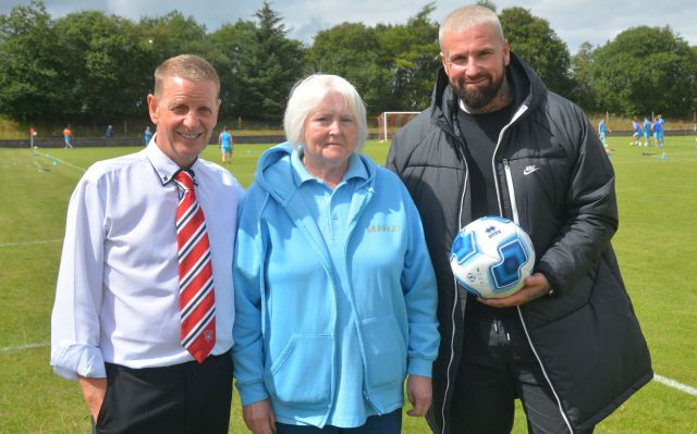 Ryan and John also thanked Joan Hodge of local bar Munros for their continued support through pitchside advertising, sponsoring a player in our successful “Paying For The Jersey” scheme and sponsoring today’s match ball.