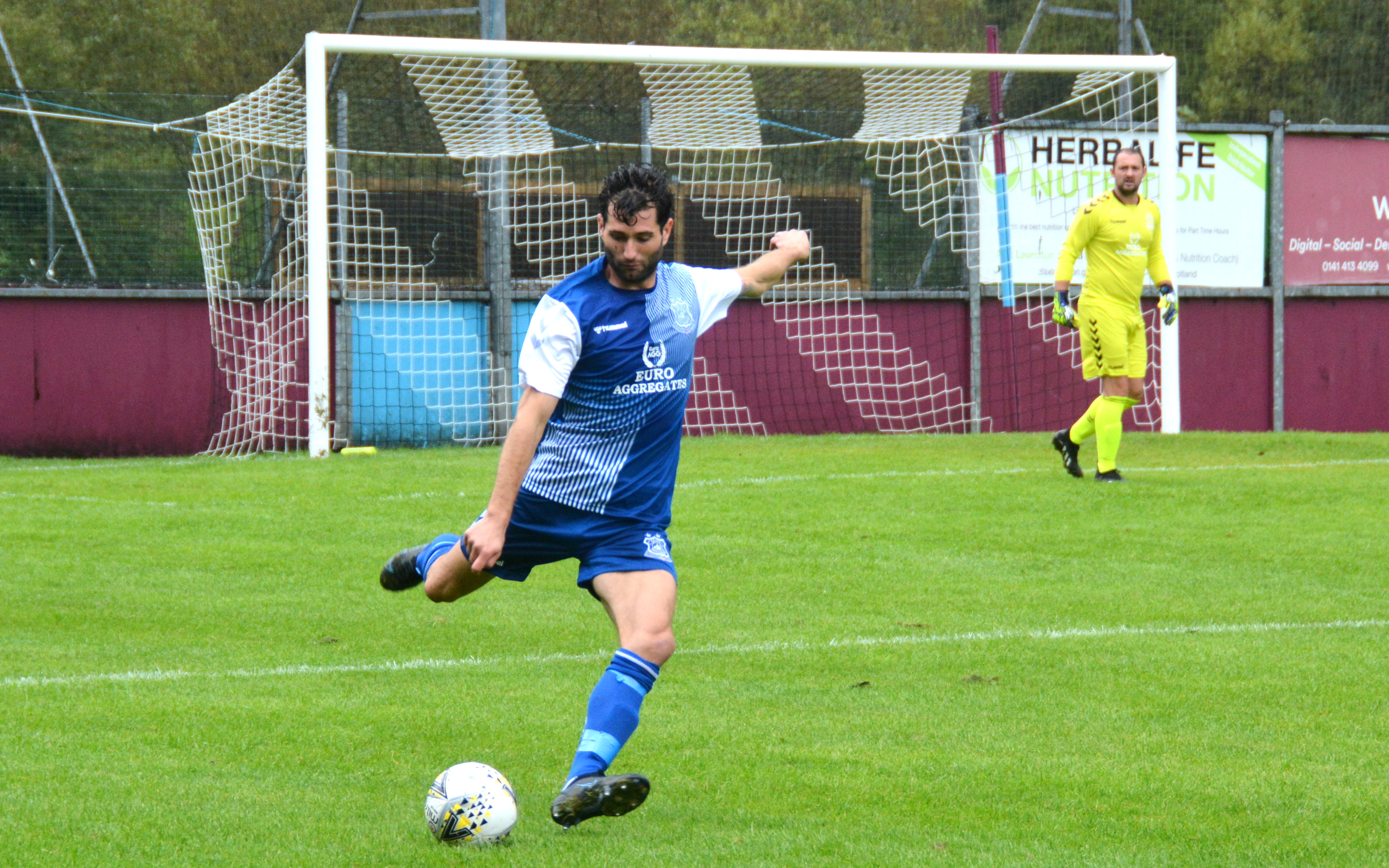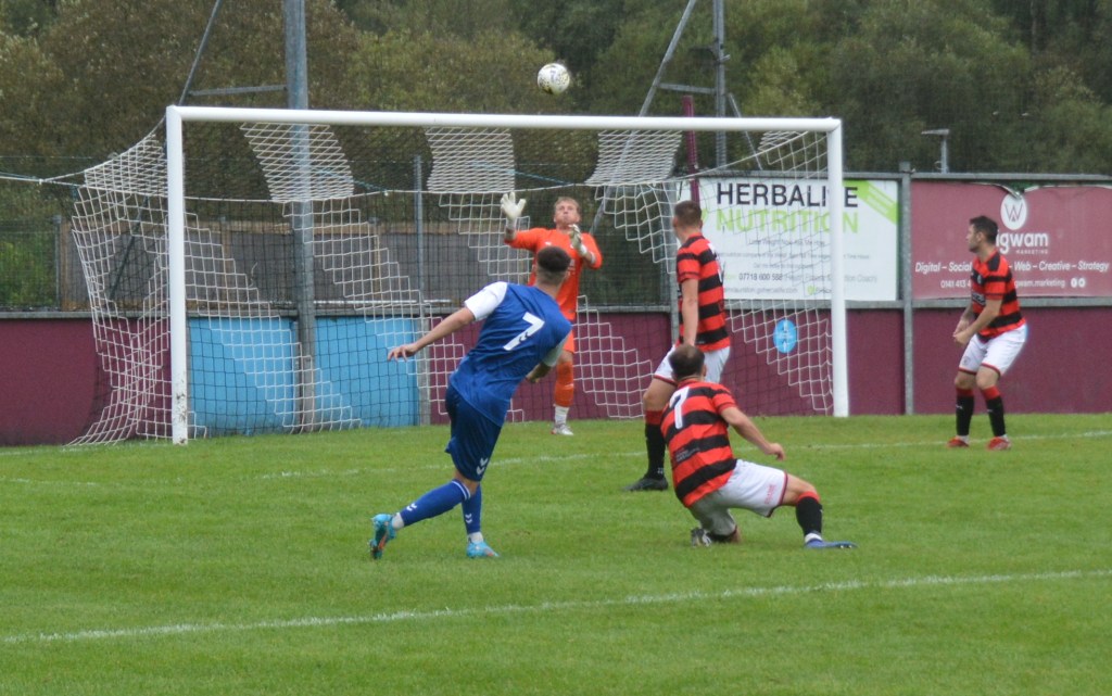 Although Glens kicked off it was the Rabs that were quick off the blocks through Michael Baber’s great run down the right holding of a couple of blue shirts before his cross was deflected out for a corner kick. Craig Pettigrew won the aerial battle with Cameron Henry at the back post before the ref awarded the Glens a free kick for an infringement.
