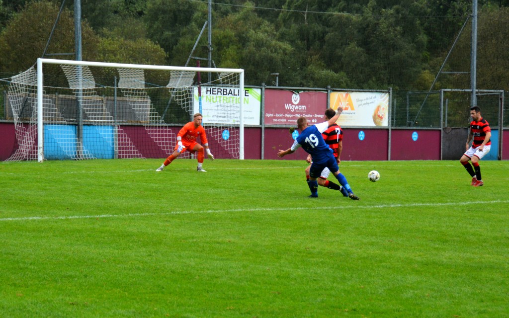 On 48 minutes the Rabs broke the deadlock with Baber the architect. After trapping the ball wide on the right, he lobbed it high into the air for Derek McNab to rise and head the ball over Pettigrew’s head and into the path of Baber to complete an exquisite one-two before driving to the bye-line and drilling a low ball that evaded both defenders and attackers at the near post leaving the task of the tap-in to Kerr McCormick.