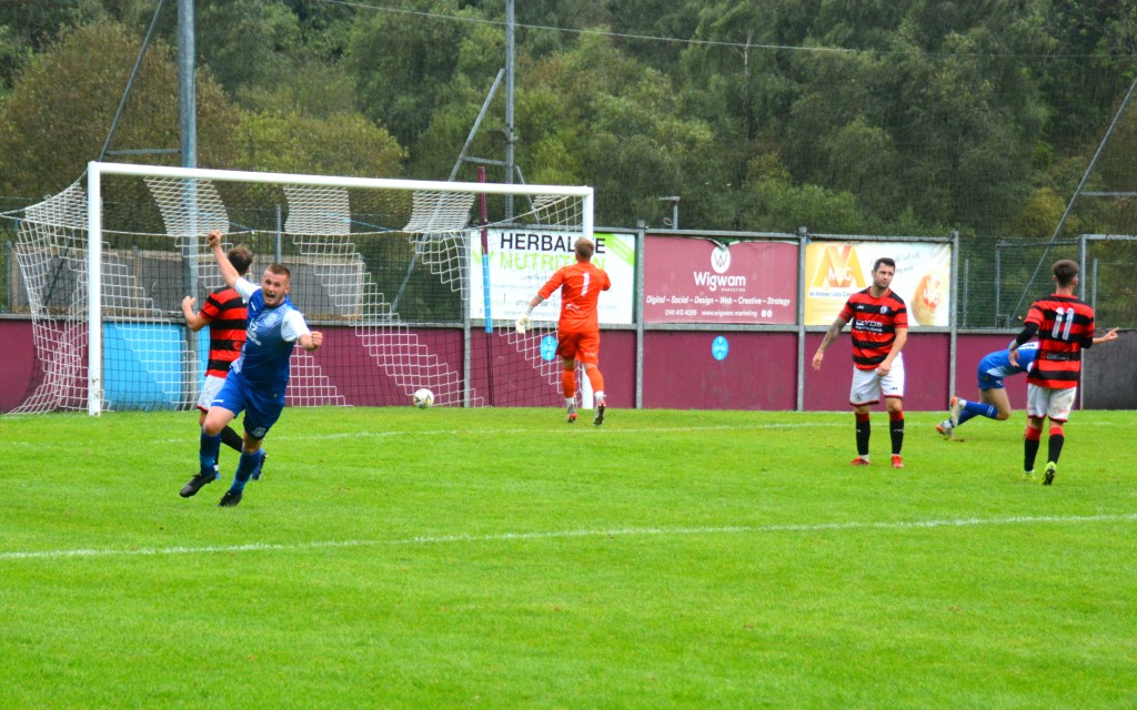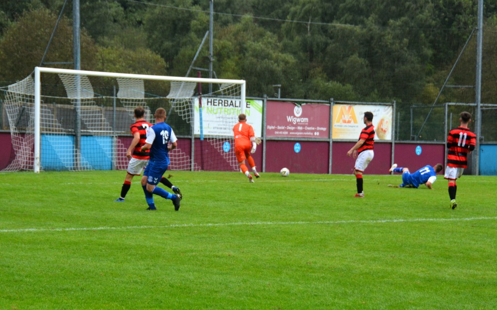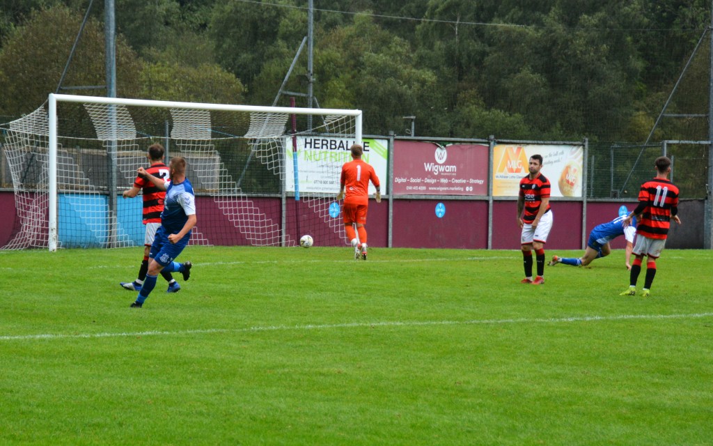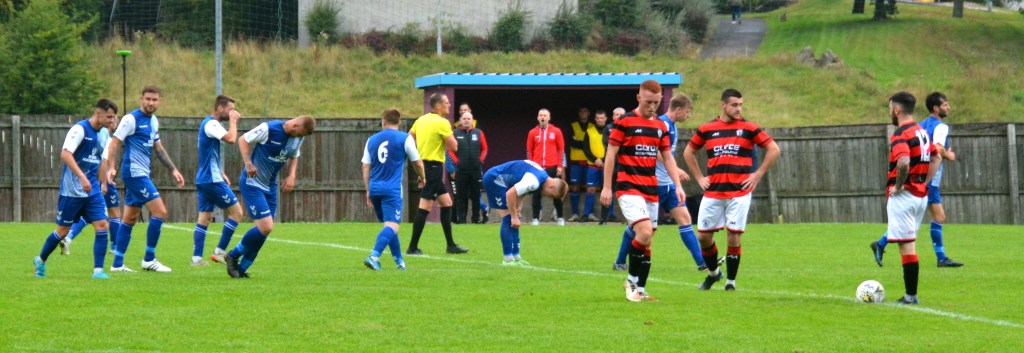 Glenafton made 3 changes to the 11 that started against East Kilbride Thistle last Saturday with Sean McKenzie (suspended), Hugh Kerr (injured) and Leon Murphy making way for Cameron McKenzie, David Blyth and Ryan Nisbet. The visitors donned their new blue away top for the first time and like the home red top it is sponsored by the local business Iain Watt Haulage. Today’s hosts Rob Roy are unbeaten in the league with 2 wins and a draw in their opening 3 games.