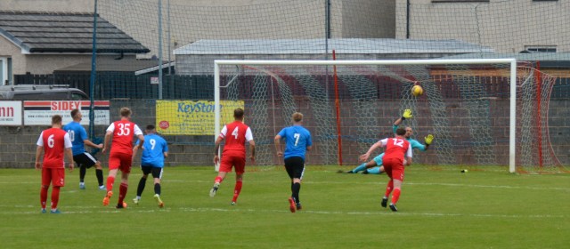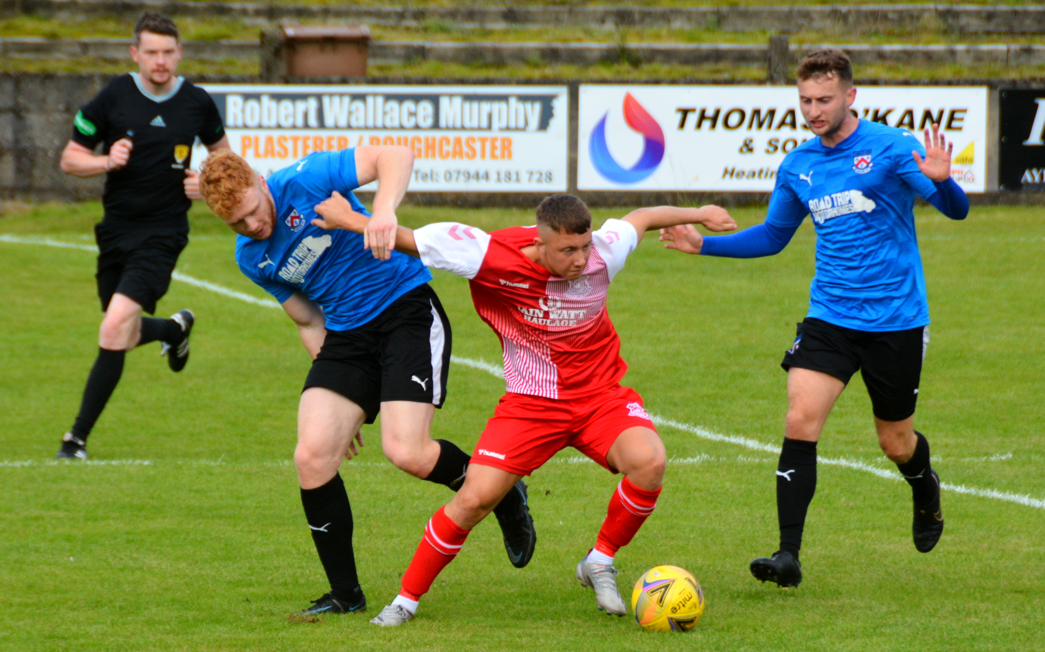 At the other end Moore’s corner was met by Sherrie deep in the six-yard box but his glancing header was blocked by Pettigrew only for Troon to recover the ball and win a free kick within the ‘D’ but McCloskey’s effort was blasted into the wall and the chance was gone.