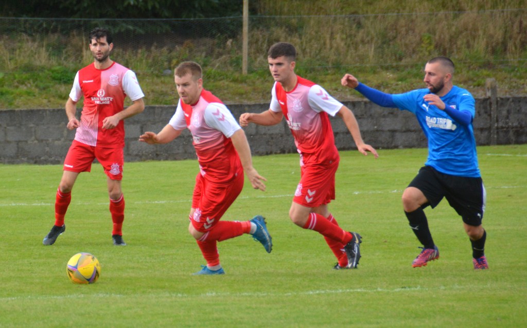 On 88 minutes Paton played a ball down the right wing where Murphy headed it high towards the “D” and as two defenders under pressure from O’Kane got into a fankle the ball fell for Kemp to lash a shot from 22 yards that whizzed past Burgess and inches over the bar.