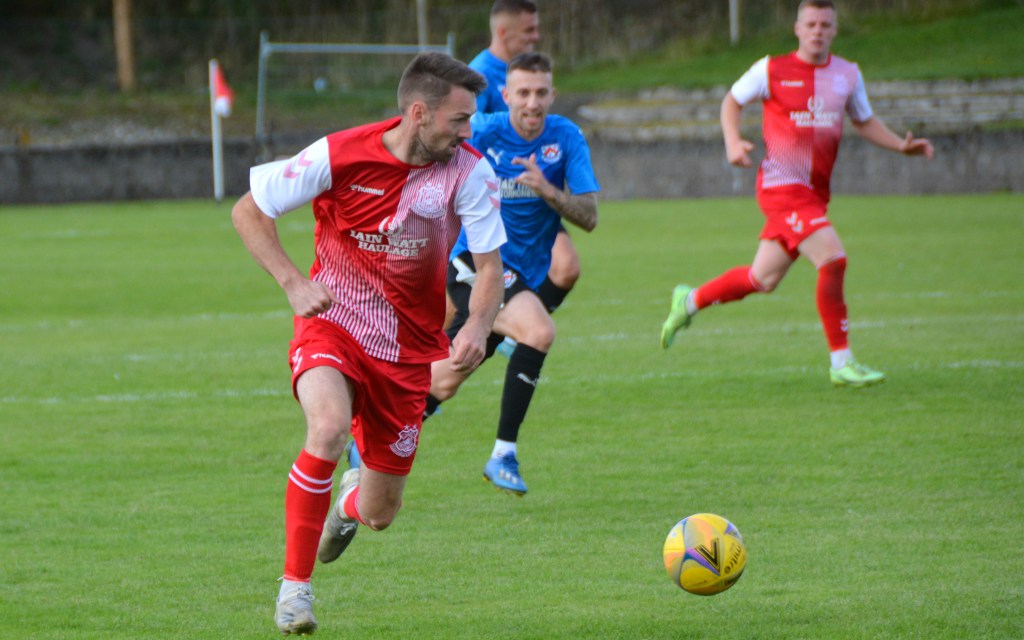 Soon after, Jamie McKernon snapped up the ball on the centre and threaded a perfectly weighted forward diagonal pass for Kemp to collect who held off the challenge from Moore before blasting another shot from 22 yards that dipped over the bar.