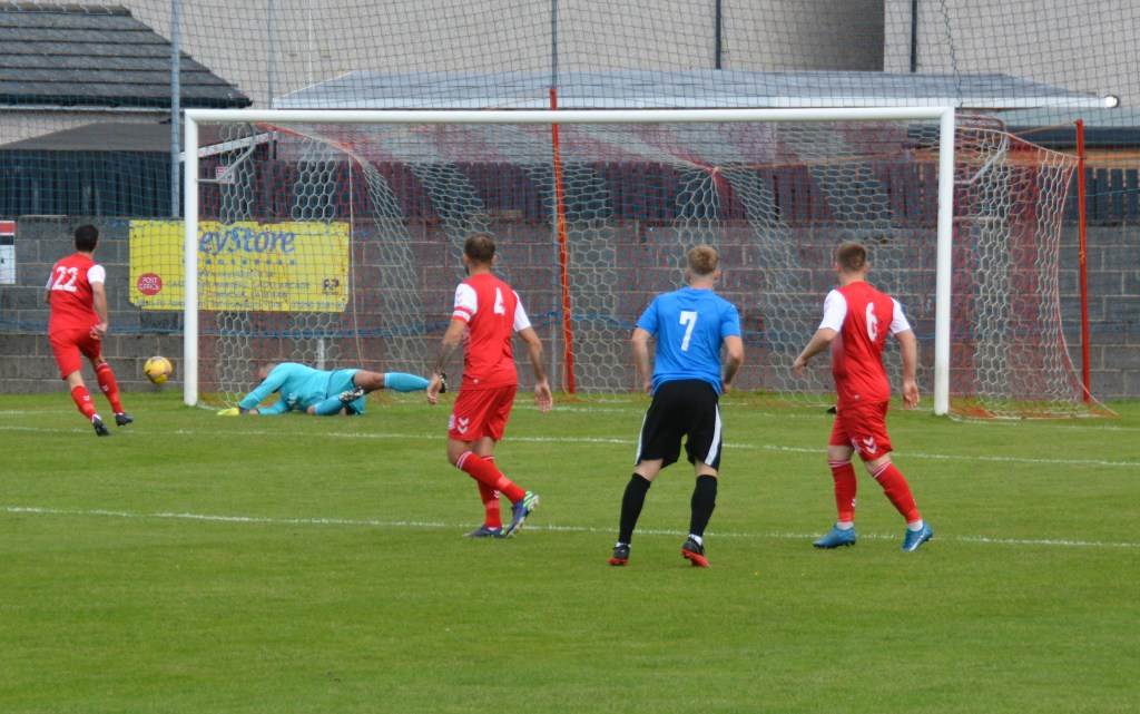 Troon kicked off and passed up a great chance to take the lead in the opening minute after Ben Black curled a low shot from 18 yards and keeper David Markey got down low to push the ball to the side and although it fell kindly for the incoming Josh Black he fired his shot from inside the six yard straight into the arms of the grounded goalie.