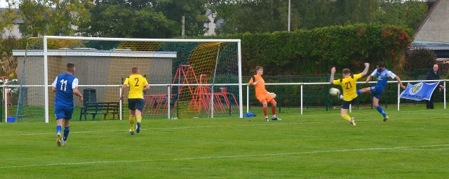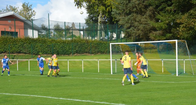 Markey launched a back pass upfield that bounced on the outskirts of the Rothie box where McKenzie chased it down and held off a couple of defenders before rolling it back to O’Kane who quickly picked out Martin on the right hand side box from where he curled a high ball to the far side of the six yard box for McKenzie and Paul Paton, but the latter quickly sussed that Keith Walker was going to win the header and took a few steps back anticipating where the ball would drop before lashing an unstoppable shot into the net for his first goal for Glenafton. The visitors 3-0 up on 72 minutes as patches of blue sky reappeared.