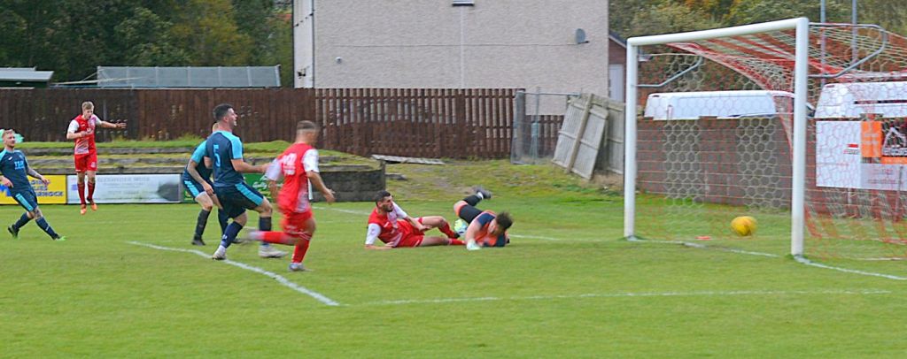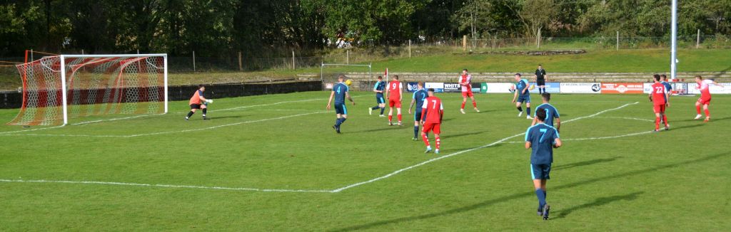 Leon Murphy broke into the right-hand side of the box cut inside Lauchlan Reid before firing a shot that slipped wide of the far post. Michael McMullin was busy down the left and won a corner on 10 minutes that was headed clear before and the chance gone. Hugh Kerr released McMullin down the left to whip a dangerous ball across the face of the goal that was met by Ollie Rowe at the back post only for shot to skewed wide of target.