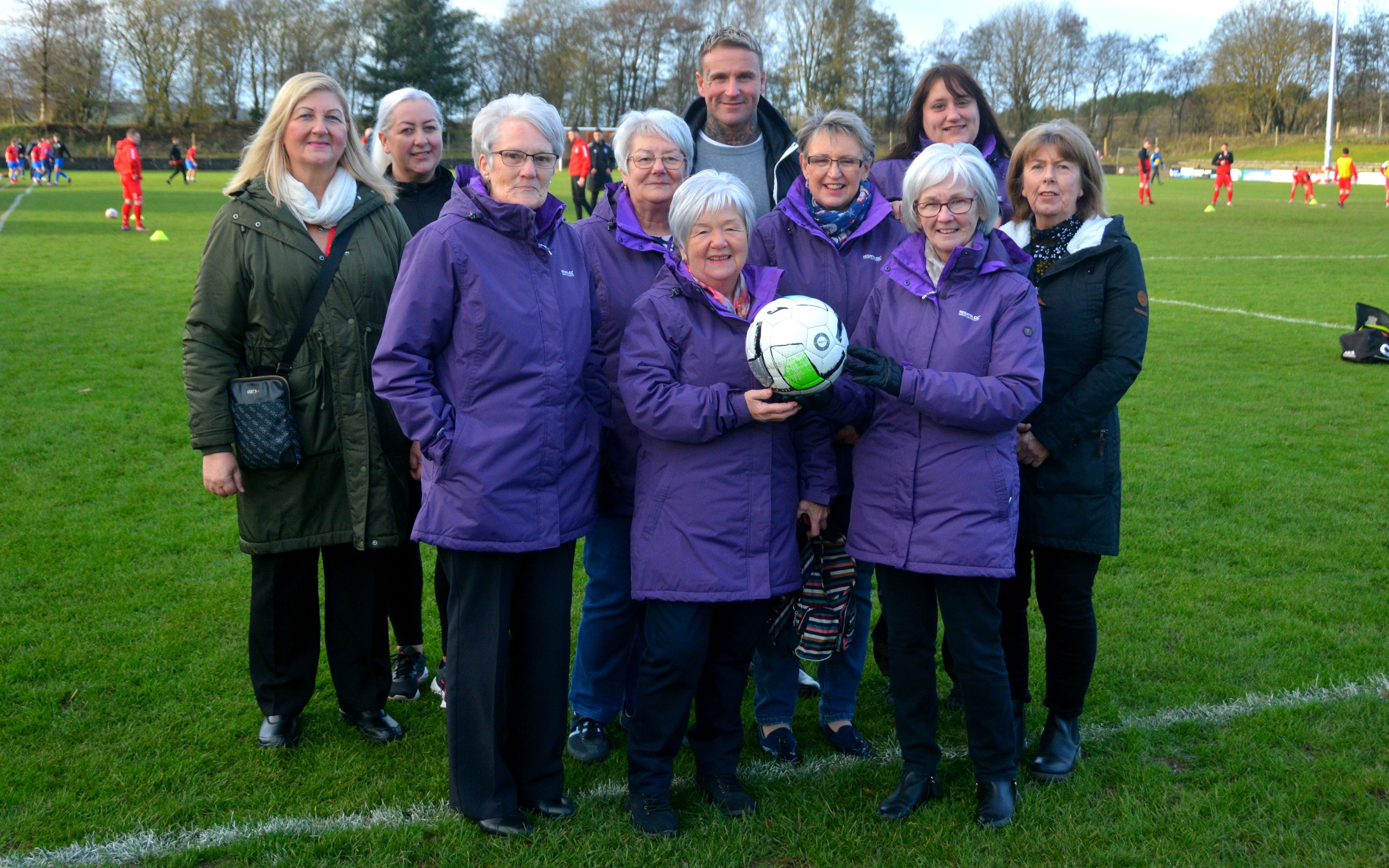 Prior to kick-off manager Ryan Stevenson and club physio Laura Pagan posed with the New Cumnock Striders, one of today’s match ball sponsors. The Striders often make use of The Hunter Suite after some of their walks.
