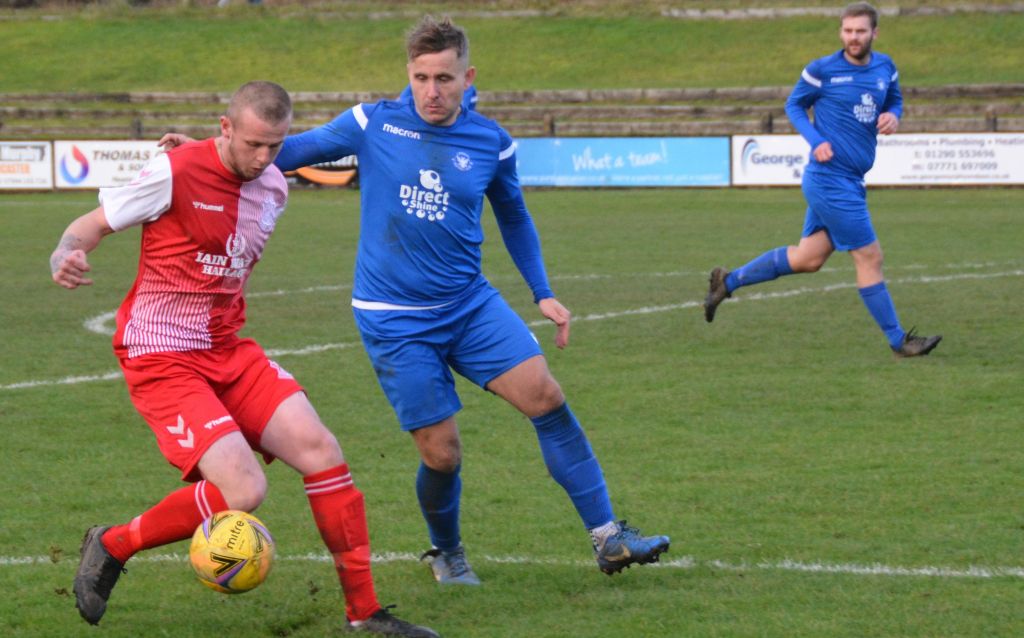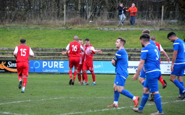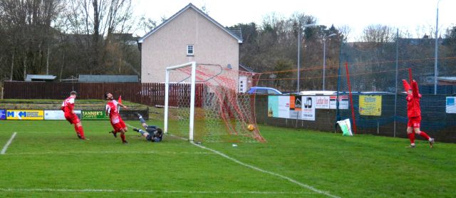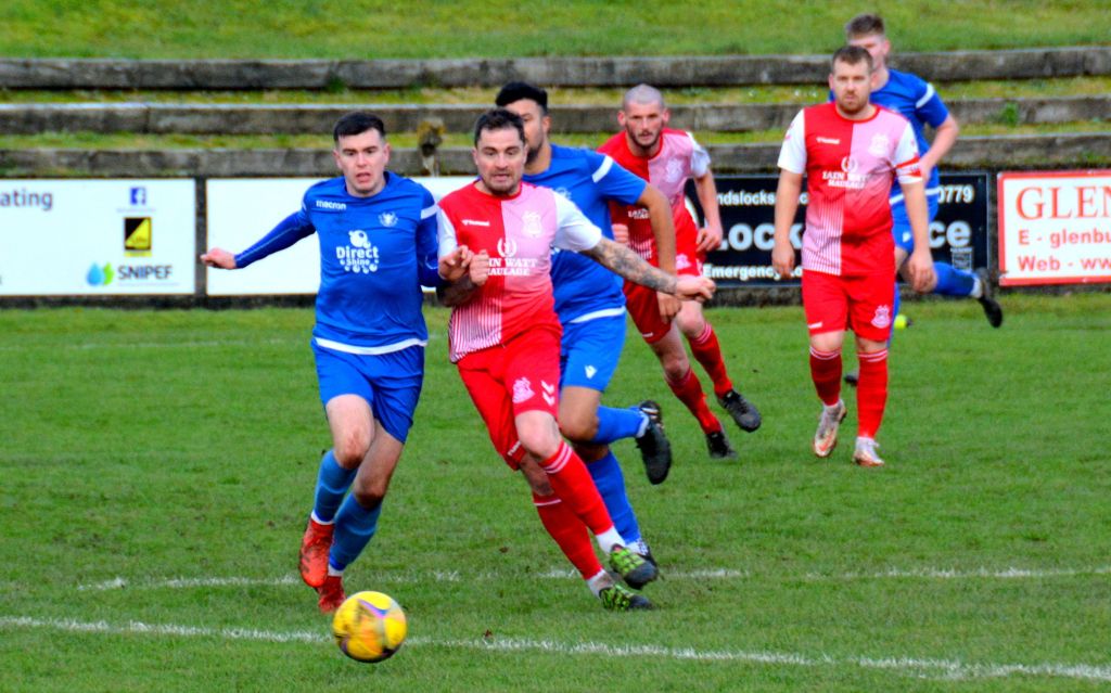 A minute later S. McKenzie showed defender Liam Wooley a clean pair of heels as he burst into the box but his shot from 12 yards was parried away on the six yard-line by keeper Jordi Duncan who then pounced to clutch the ball before the inrushing David Blyth could get a touch. A minute after Leon Murphy whipped a great ball into the box where C. McKenzie got between two defenders but his header from the penalty spot sailed wide of the post.