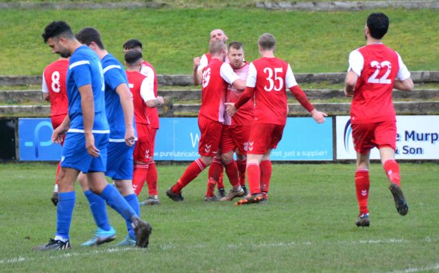 The home side continued press while at the other end a low shot from Mark Smith was comfortably held by keeper David Markey